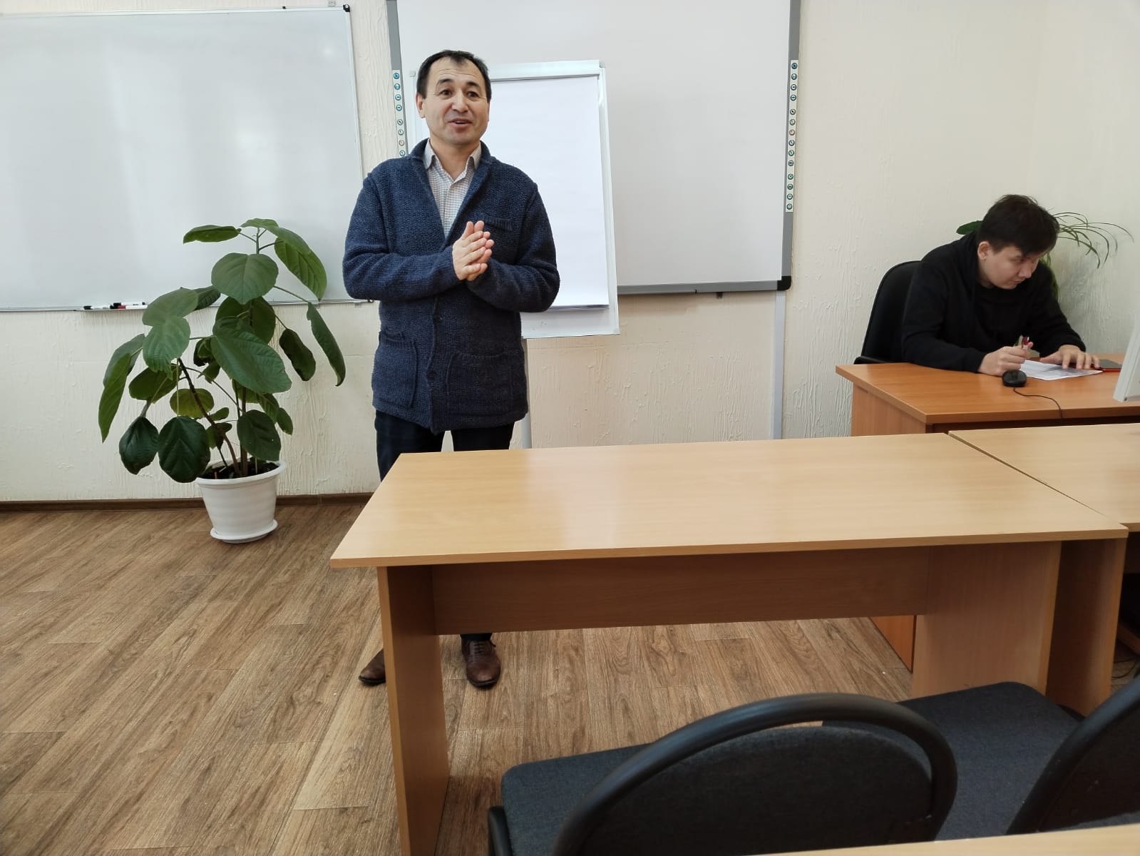 Педагог-психолог колледжа Р.Г.Калимуллин познакомил присутствующих с темой «Стресс-менеджмент и профилактика выгорания», провел тренинг по техникам стресс-менеджмента и оздоровительной практике.