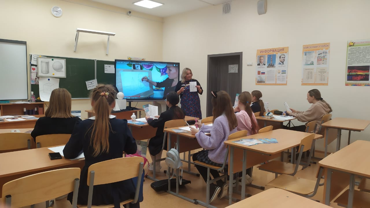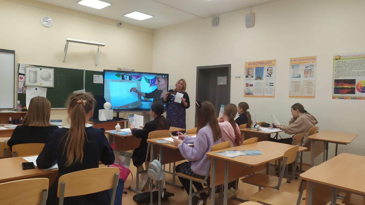 17 и 21 октября 2022 г. в ГБОУ Республиканская полилингвальная многопрофильная гимназия №1 г. Уфы, было проведено профориентационное мероприятие для обучающихся 9-х классов. Учитель Изобразительного искусства М.И. Снегирёва рассказала школьникам о приёмной кампании 2023-2024 у.г. в Колледже БГПУ им.М.Акмуллы: условия и особенности приема документов, содержание вступительных испытаний специальности 54.02.06 "Изобразительное искусство и черчение". Информационная поддержка мероприятия осуществлялась заместителем директора колледжа по учебно-воспитательной работе Н.Н.Гардамшиной.