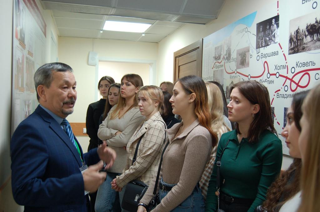 Сотрудники архива провели очень интересную обзорную экскурсию по отделам и выставкам архива. Учитывая, что 2 февраля в Отечественной истории дата выдающаяся (День воинской славы России — День разгрома советскими войсками немецко-фашистских войск в Сталинградской битве) студентам продемонстрировали выставку, на которой отражается боевой путь 112-й Башкирской кавалерийской дивизии и рассказали основные вехи биографии её командира – Минигали Шаймуратова.
