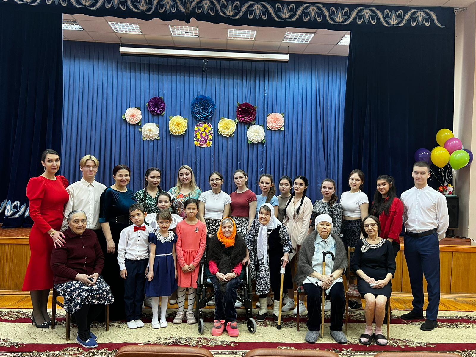 Студенты групп 9ПНК-12, 9ПНК-21, 9ПНК-22 совместно с преподавателем Кинцель Валентиной Николаевной приняли участие в благотворительной акции и отправились в дом престарелых с концертной программой и поздравили с 8 Марта с прекрасных бабушек. Студенты представили трогательные номера и по-весеннему тёплые пожелания.