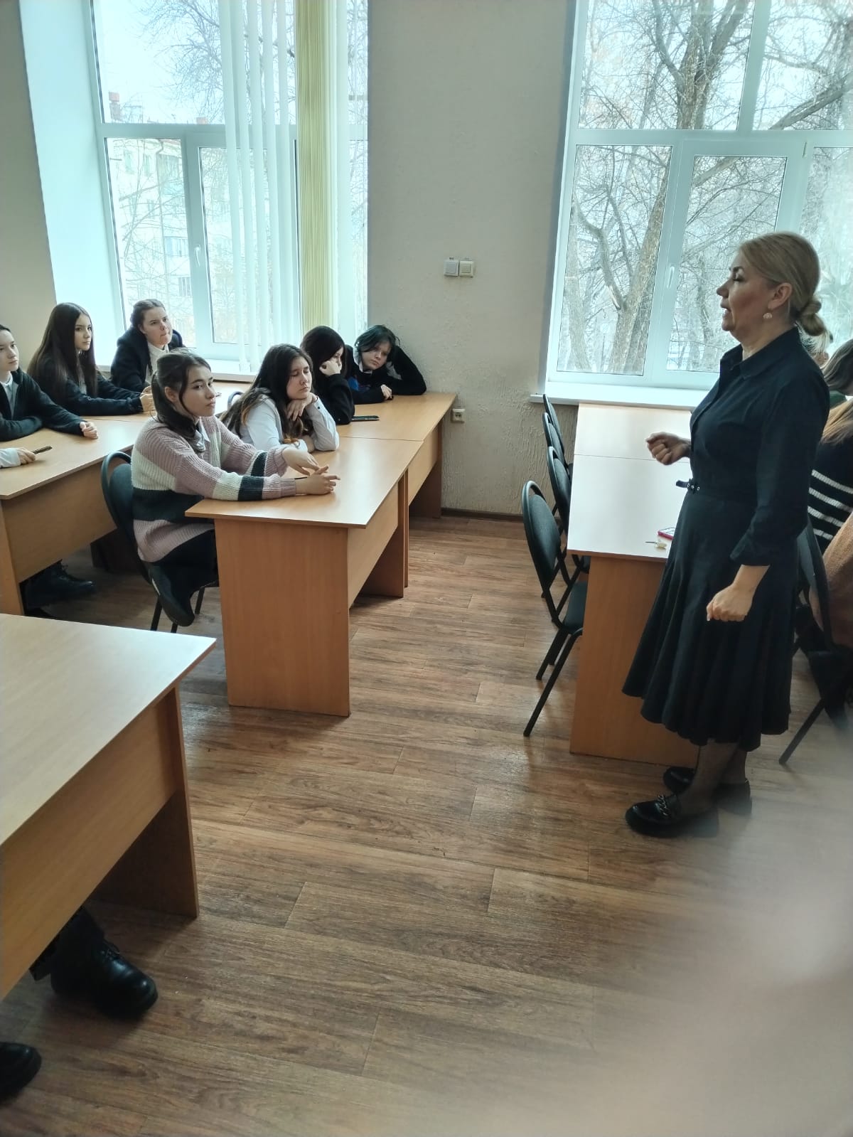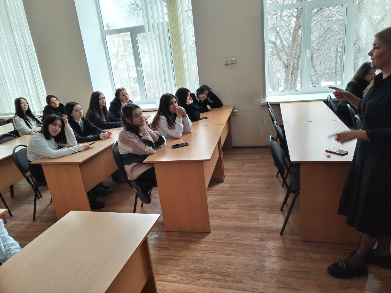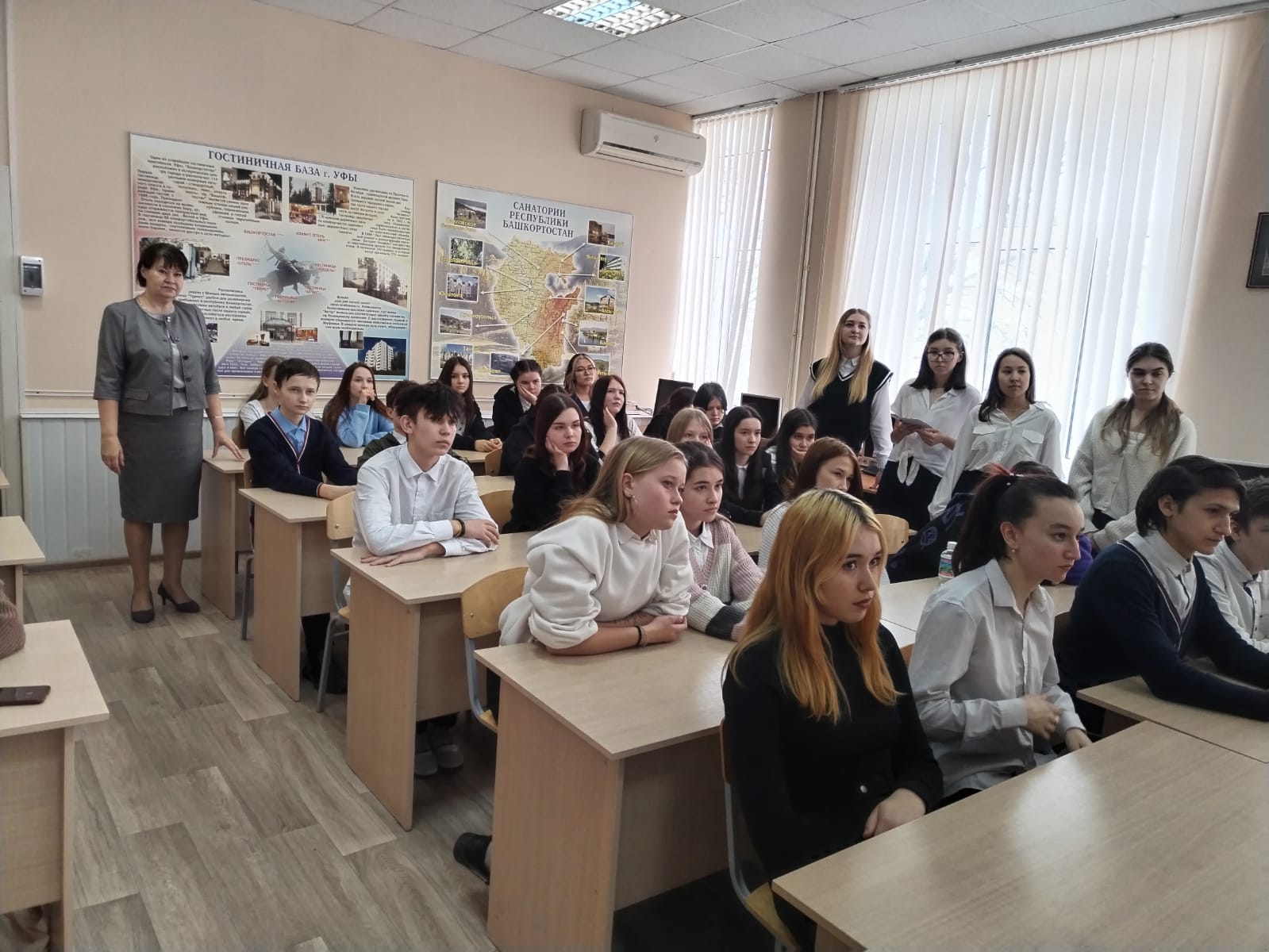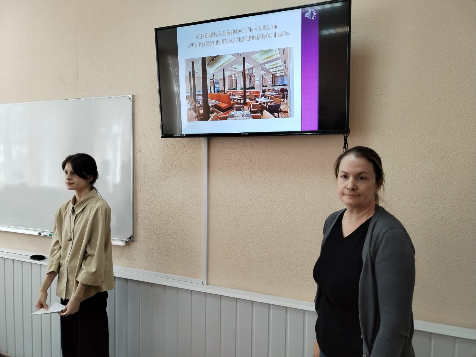 Психолого-педагогическому классу была представлена полная информация о специальности на русском и английском языках. Были представлены два диалога на тему заселения и выселения (диалоги «Check in» и «Check out of a hotel») гостя из гостиницы на английском языке,  далее школьники увидели презентацию на тему «Мy dream hotel» (проект «My dream hotel: feel like a star», разработанный студентки 3 курса). О.В.