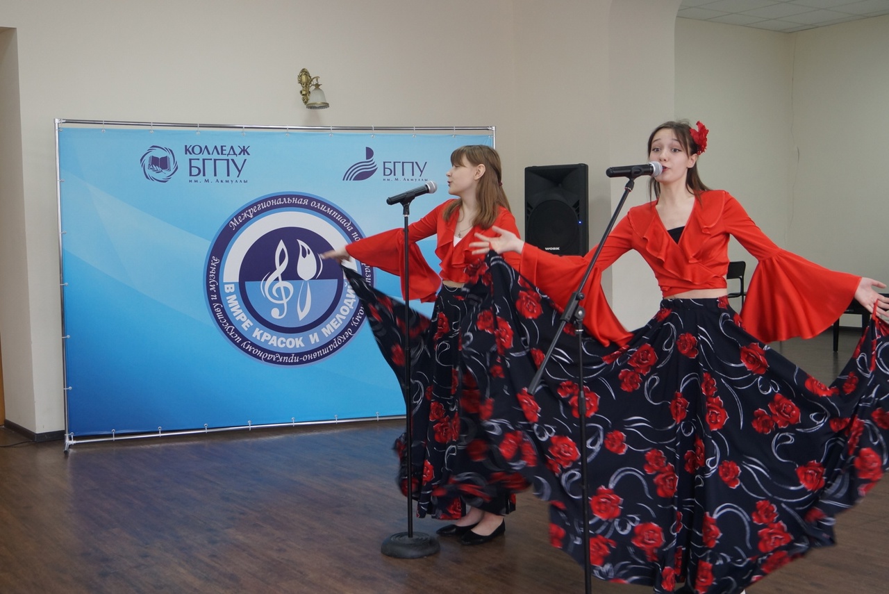 25 марта 2023 года, в первый день весенних школьных  каникул,  в колледже БГПУ им. М. Акмуллы  традиционно состоялась XII Межрегиональная олимпиада «В мире красок и мелодий». Мероприятие было организовано преподавателями специальностей «Изобразительное искусство» и «Музыкальное образование» под руководством заведующей отделения Низамовой Р.Р. и  председателей ЦК Козловой Г.В. и Мирзаяновой М.М. Олимпиада проводилась по следующим номинациям: рисунок, живопись; декоративно прикладное искусство; инструментальное исполнительство (соло, дуэты, ансамбли) и  вокал  (соло, дуэты, вокальные ансамбли).