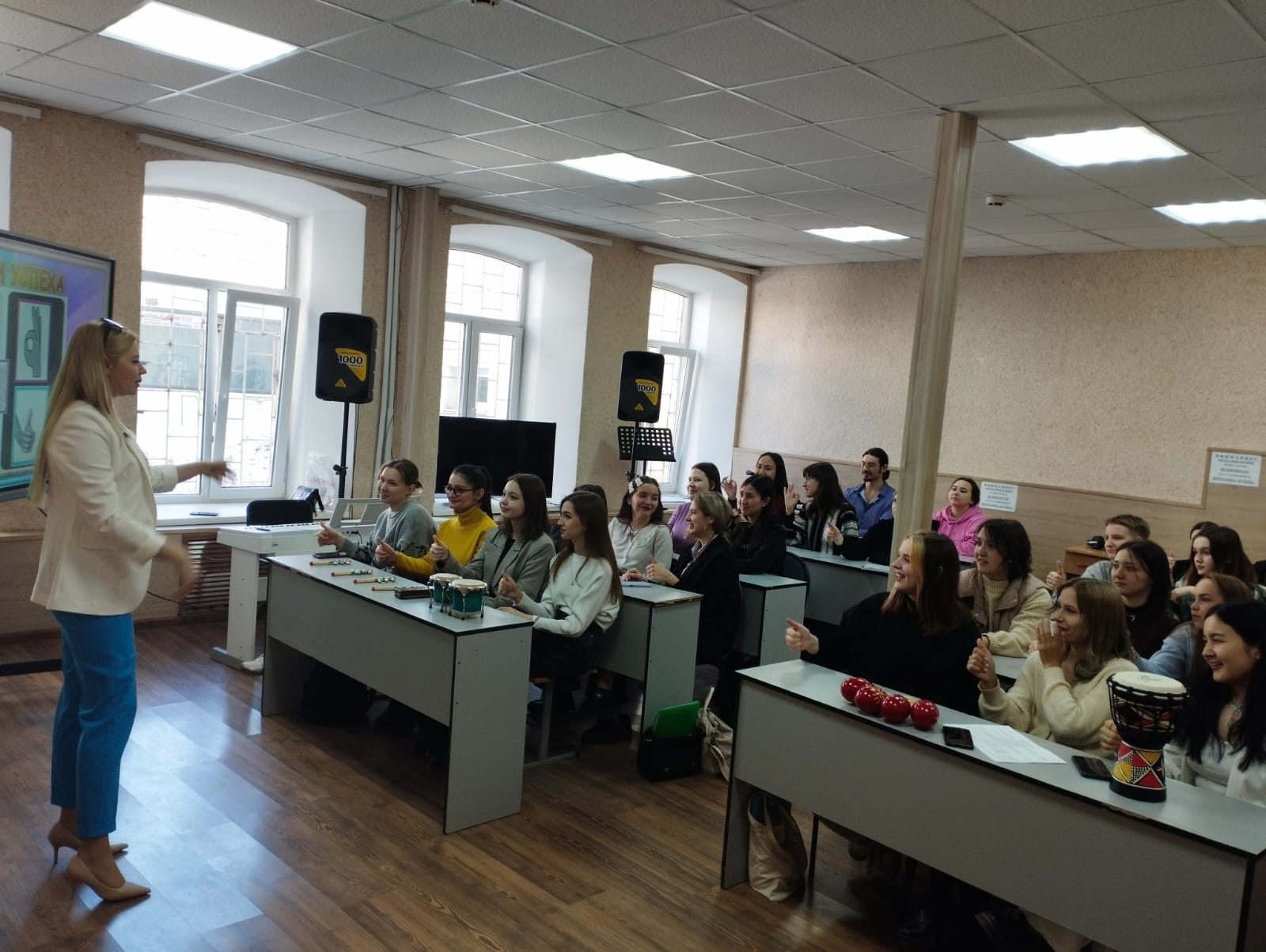 В рамках мероприятий, посвященных Году педагога и наставника  студенты 2-х и 3-х курсов специальности Музыкальное образование 3 апреля 2023 года встретились с абсолютным победителем республиканского профессионального конкурса «Педагог года дошкольной образовательной организации Республики Башкортостан — 2023» Гронской Екатериной Сергеевной, выпускницей этой специальности, ныне работающей музыкальным руководителем детского сада №214 Советского района ГО г.Уфа.