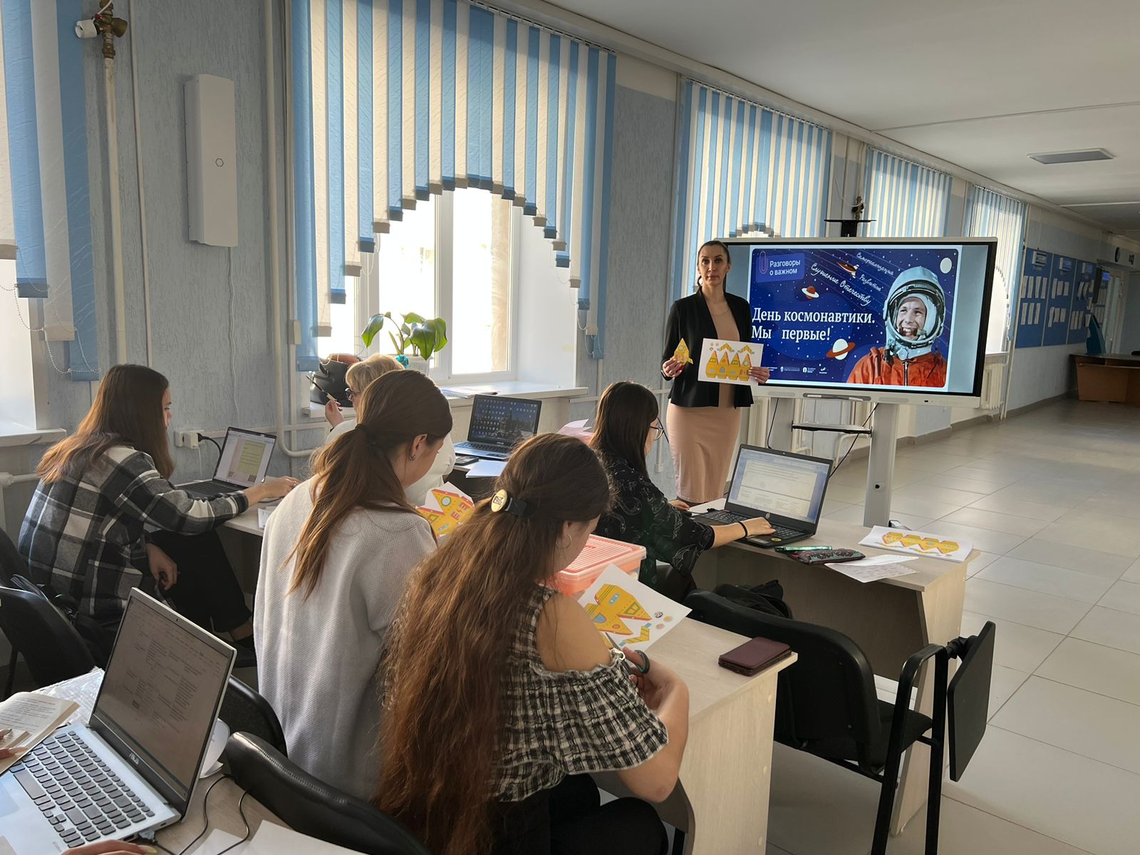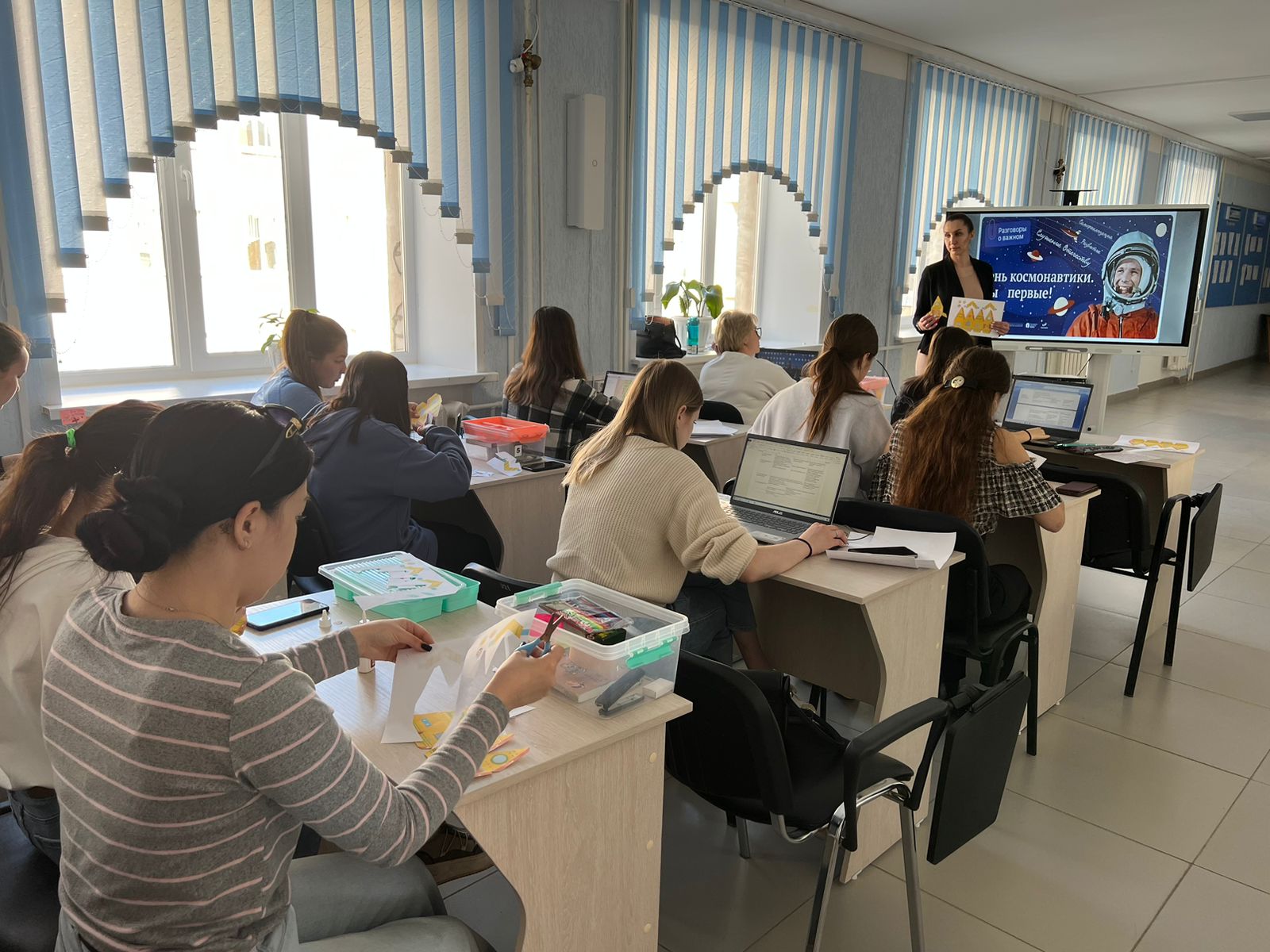В рамках проведения занятия «Разговоры о важном» преподаватель Кинцель Валентина Николаевна была приглашена для проведения мастер-класса «Научу за 5 минут» со студентами 2 курса Института педагогики по специальности: «Дошкольное образование». В ходе которого педагог продемонстрировал формы работы с детьми по теме: «День космонавтики» и провела фрагмент занятия по конструированию из бумаги для старших дошкольников.