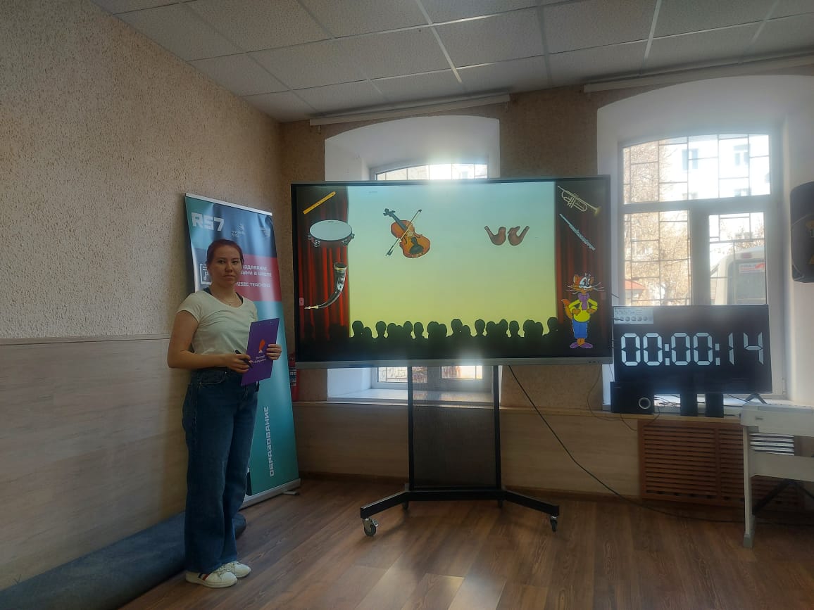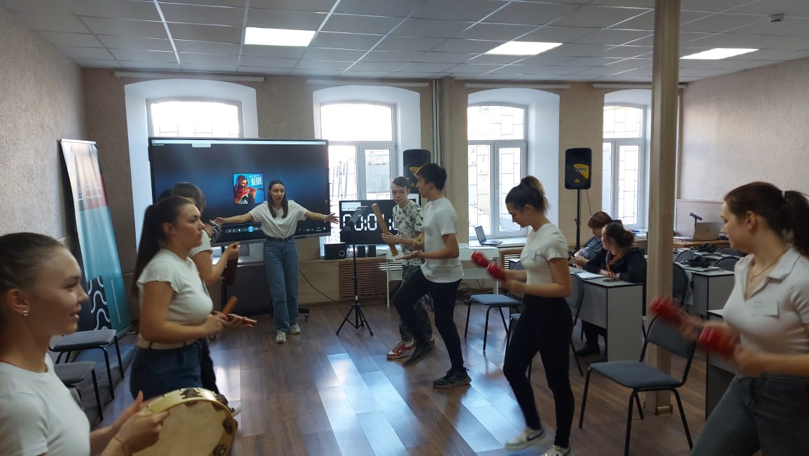 В задании «Ритмическая импровизация»  участники ДЭ организовали репетиционный процесс и продемонстрировали концертное исполнение ритмической импровизации на детских шумовых инструментах с использованием техники body percussion и перестроения-дефиле.