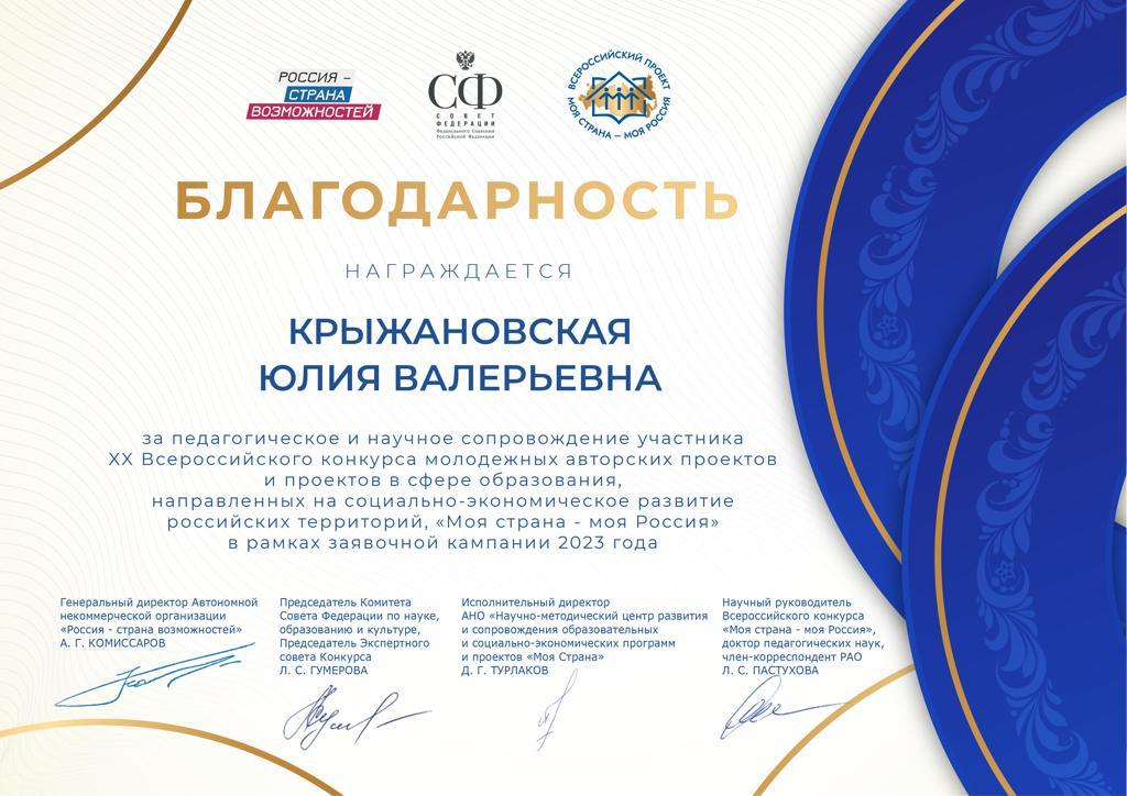 В марте этого года стартовал Всероссийский просветительский проект «Моя страна – моя Россия». Это яркий пример, когда инициатива, рожденная в обществе, получила широкое тиражирование в регионах Российской Федерации среди молодежи, нашла поддержку органов государственной власти, местного самоуправления и экспертного сообщества.