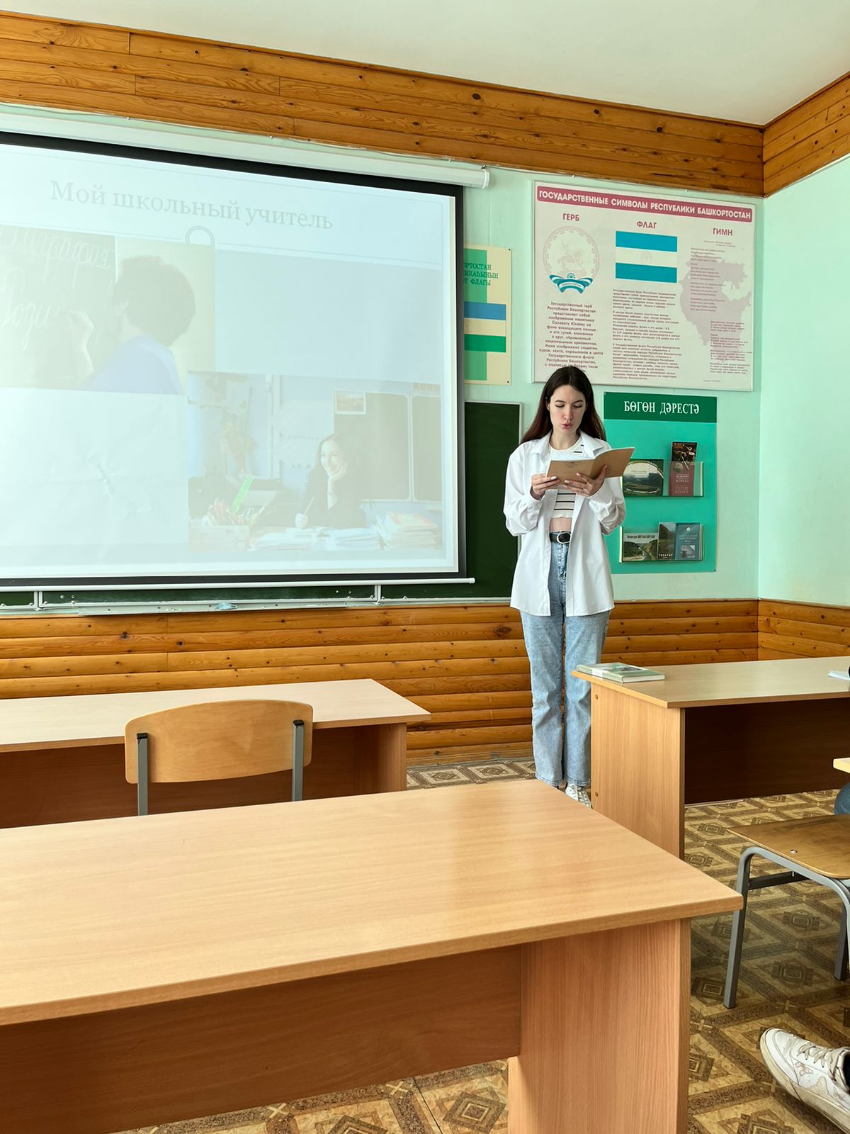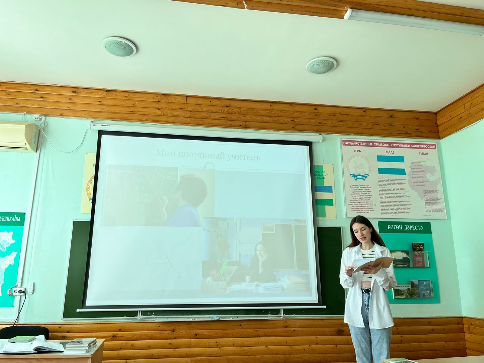 В начале куратор группы Алсу Ануровна рассказала о том, что решение посвятить это 2023 год Учителю еще раз подтверждает значимость для общества гуманистической миссии, которая лежит в основе профессии. Ведь именно талантливый педагог, опытный наставник открывает детям путь к познанию и развитию, достижениям и открытиям. Учитель формирует ценностные ориентиры, ищет в каждом ребенке зерна таланта, позволяет совершать ошибки, чтобы найти себя и свое призвание, стать счастливым и самодостаточным человеком, мотивированным профессионалом.