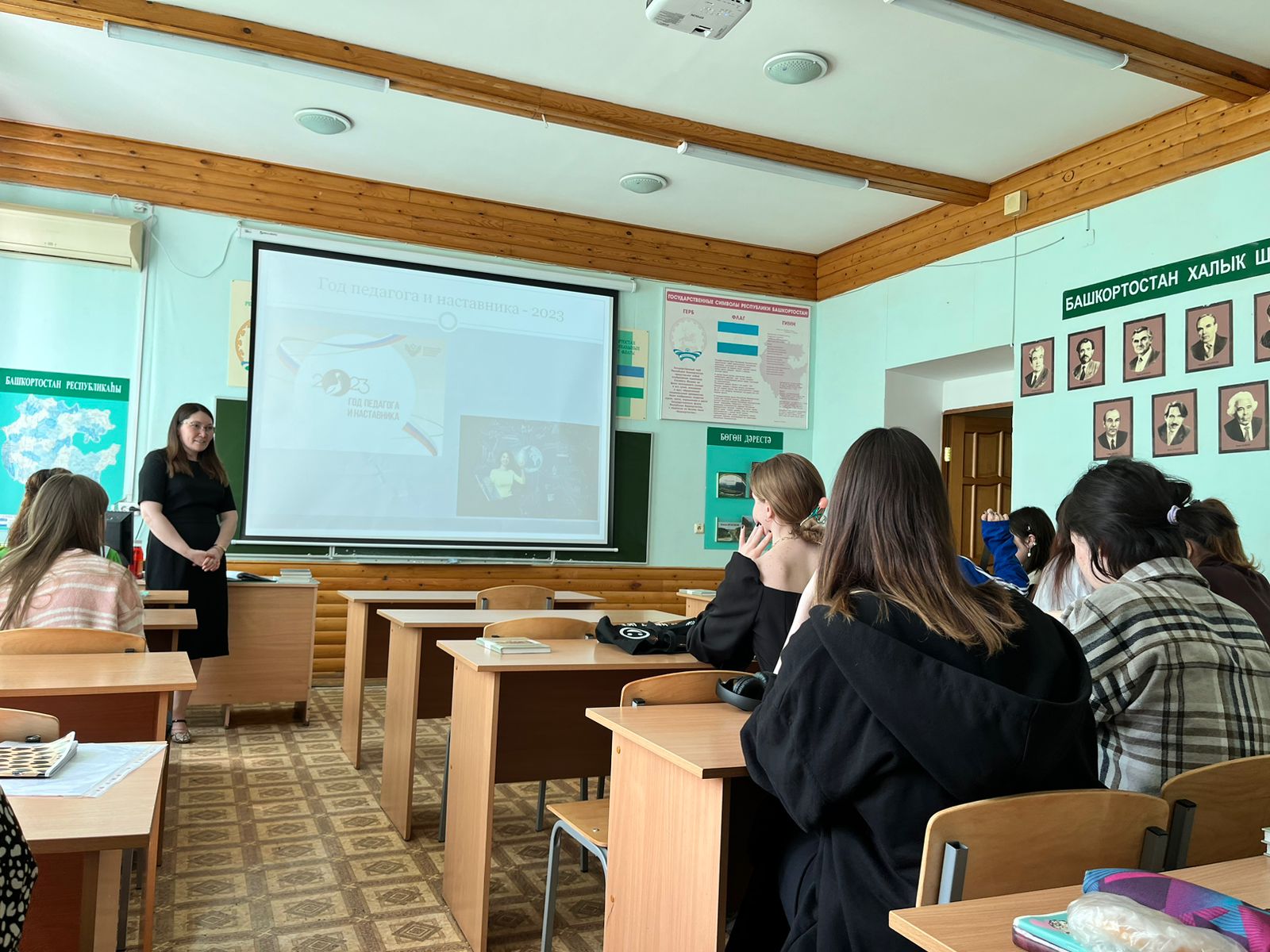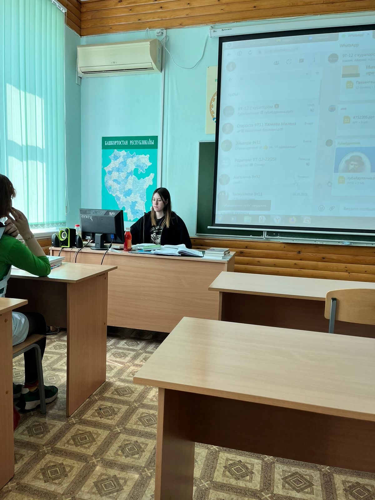 Куратор Бускунова А.А. вместе с группой 9Т-12-22(25) 16 мая в колледже провели внеклассное мероприятие  в формате беседы-обсуждение на тему «Башкирские педагоги-наставники и мой школьный учитель», приуроченного «Году педагога и наставника»,