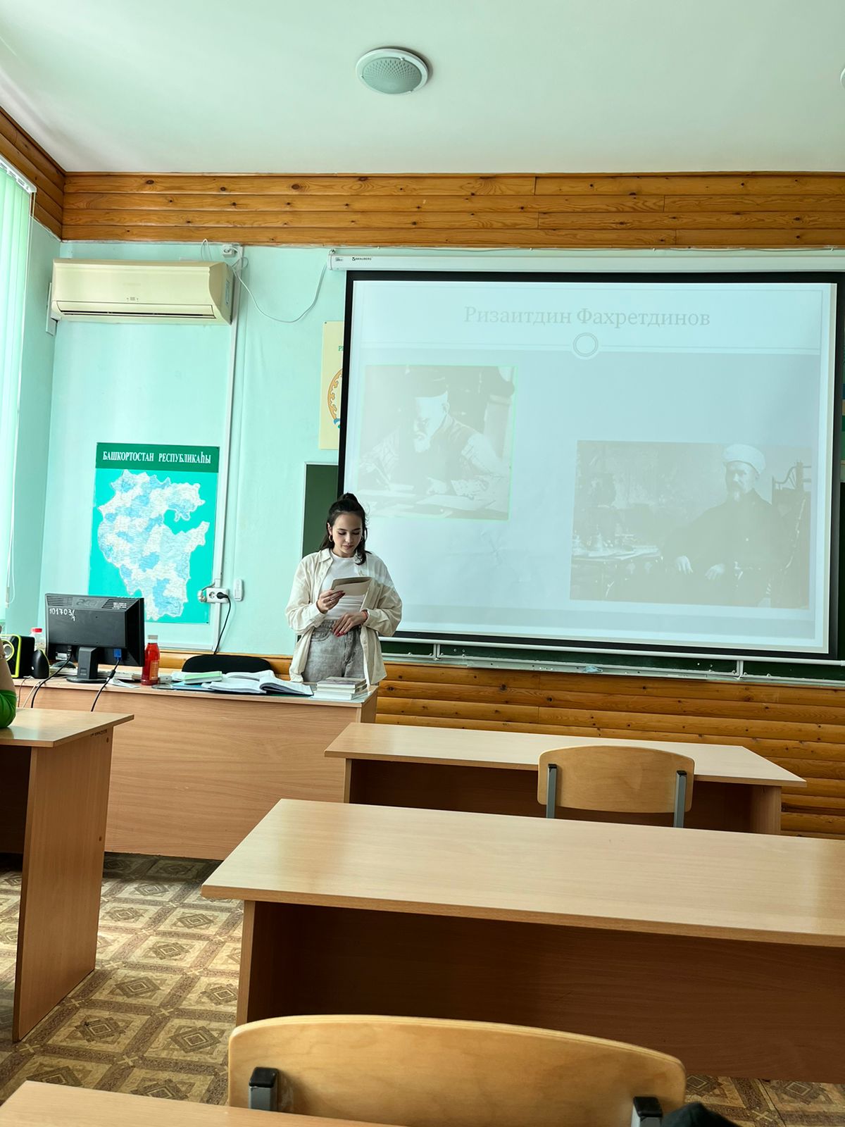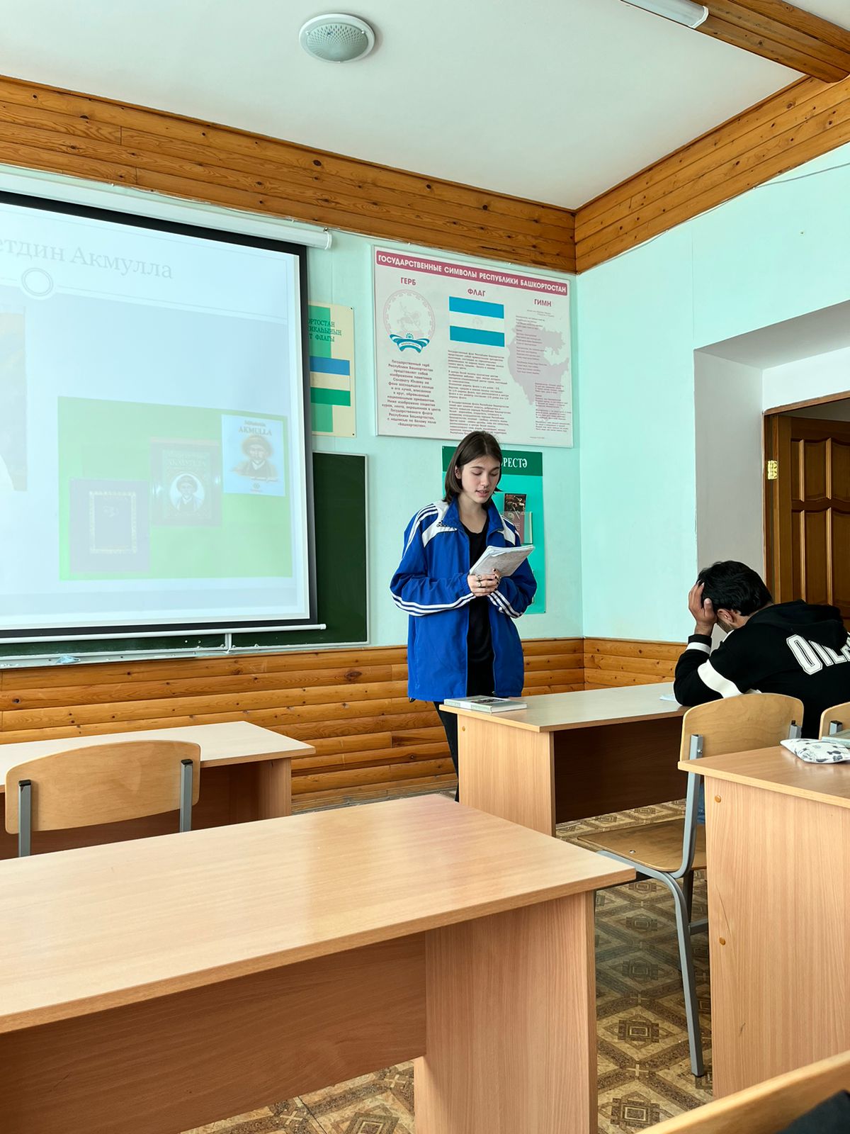 После музыкальной паузы куратор вместе с группой приступили к изучению биографии и творческого пути известных башкирских писателей и поэтов, выдающихся просветителей и наставников своего народа как Мифтахетдин Акмулла, Ризаитдин Фахретдинов и Мухаметсалим Уметбаев. Известно, что Акмулла своей поэзией прививал землякам чувство достоинства, отстаивал личную независимость и отстаивать свои права. Он продвигал в неграмотной крестьянской среде жажду знаний, требования расширения кругозора, и прививал ценность просвещения.