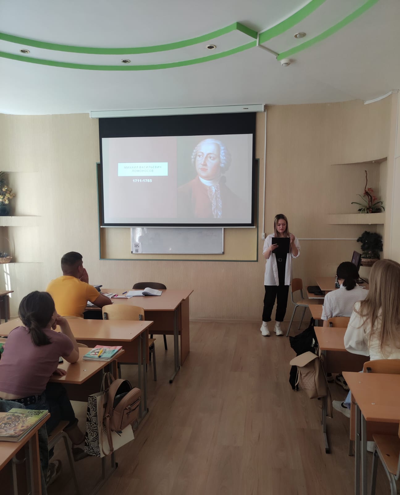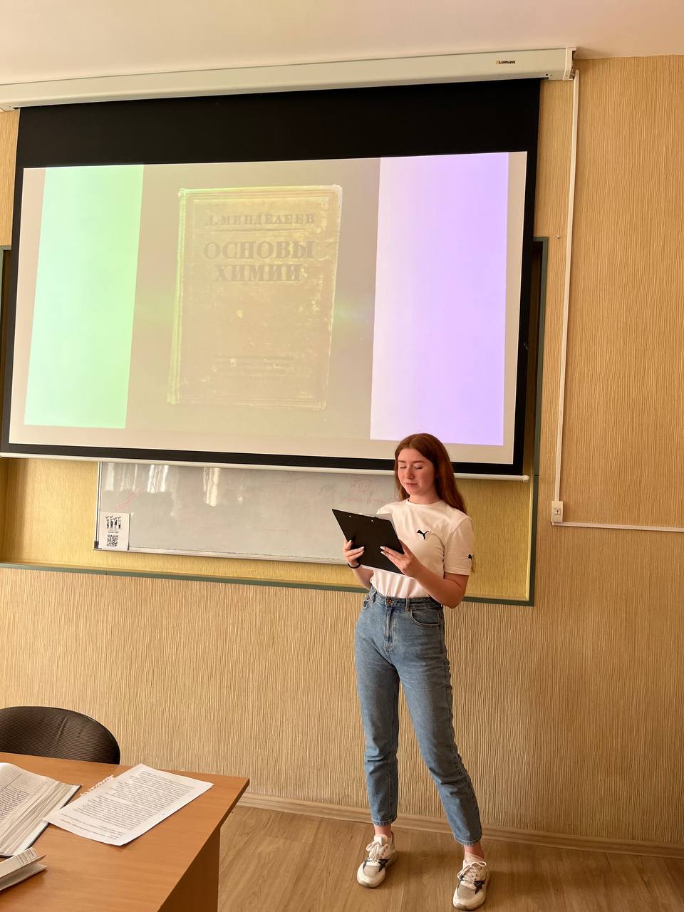 Несколько студентов группы выступили с подготовленными докладами на тему «Жизнь и педагогическая деятельность М. В. Ломоносова, Д. И. Менделеева и А. М. Бутлерова".