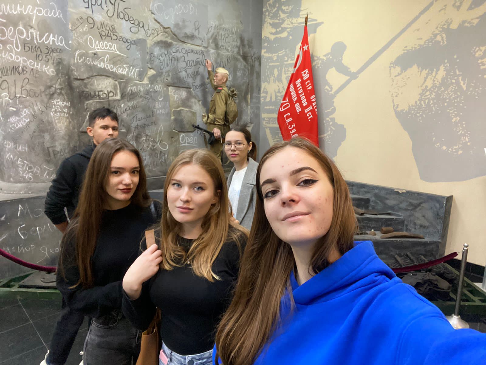 28 сентября студенты специальности «Туризм» группы 11Т-23 (24) посетили Музей Боевой Славы. Очевидно, что студенты, которые закончили уфимские школы были много раз в музее и их можно удивить только развивающейся инфраструктурой около музея: имеется ввиду появляющиеся памятники, военная техника. Студентам, приехавшим со всей республики, конечно, очень интересно в музее. Мустай Карим ( которого можно найти, только внимательно присмотревшись) в военной форме на масштабном полотне, инсталляция из треугольников- писем, быт башкир в военное время, подростки- дети, работающие на заводе наравне со взрослыми и многое другое хранят экспозиции музея.
