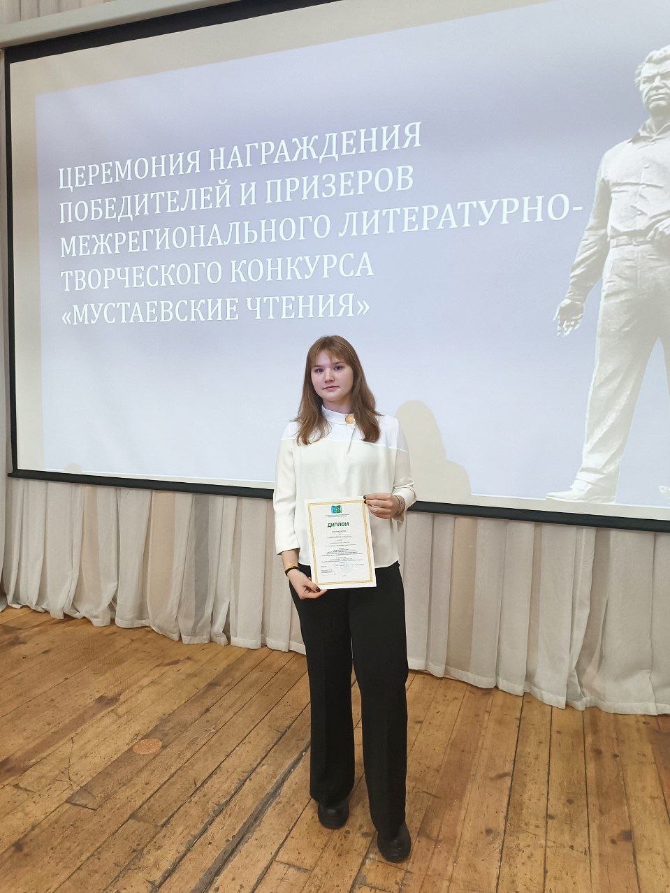 Студентка нашего колледжа группы 9Т-21-22(25) специальности «Туризм»Такиуллина Эльзана стала призером в номинации «Конкурс видеороликов «Жду вестей...» («Хәбәр көтәм…») о жизни и творчестве Народного поэта Мустая Карима и была удостоена Диплома призера в Межрегиональном конкурсе( научный руководитель А.А. Бускунова).
