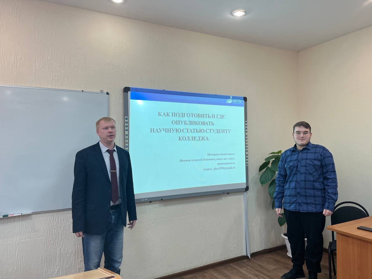Об этом, в ходе лекции, поделился опытом и дал свои рекомендации кандидат исторических наук, преподаватель колледжа Алексей Олегович Иванов. Студенты узнали также, как выбрать тему и научного руководителя, источники и технологию выбора конференций для участия в них.