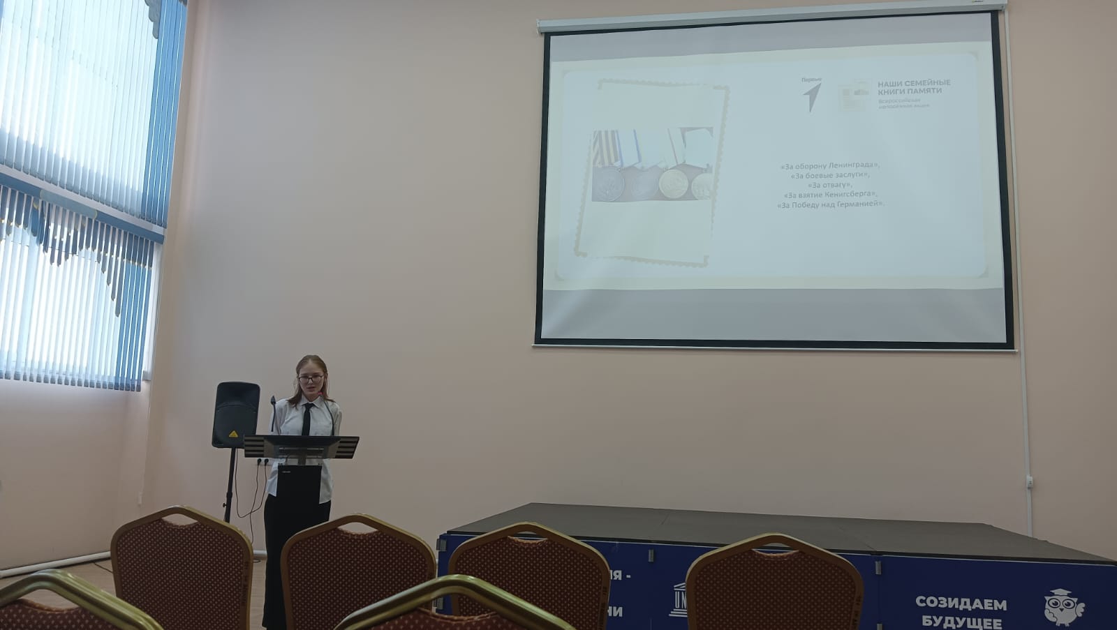 Состоялась Всероссийская акция «Наши семейные книги памяти». В ней приняло участие более 100 студентов с каждого факультета и подразделения, в том числе 17 из нашего колледжа. На протяжении 3 часов слушали более сотни выступлений о родных выступающих, принявших участие в Великой Отечественной Войне. В зале прозвучало около 150 имен и историй героев. В их числе были ветераны, труженики труда, пропавшие без вести, погибшие во время военных действий. Нам поведали их об их военных похождениях, подвигах, наградах.