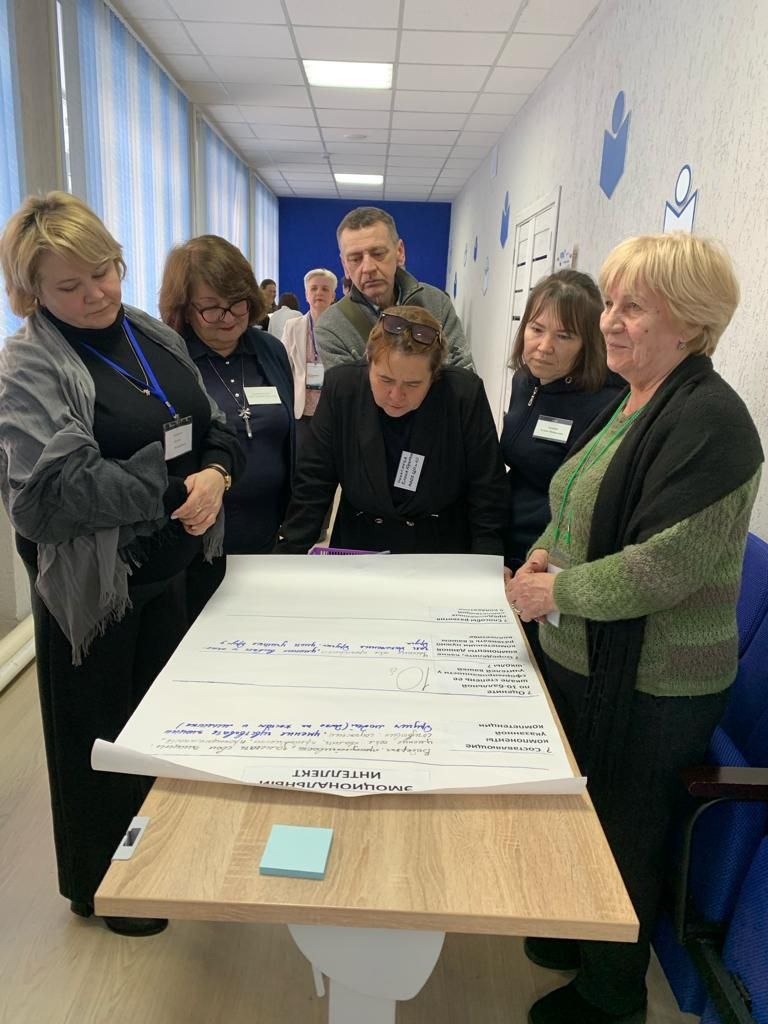 Практическая часть проводилась в виде мирового кафе «Развитие компетенций учителя», где участники работали в командах над содержанием и способами формирования трёх основных компетенций, необходимых современному учителю: информационно-цифровая компетентность, эмоциональный интеллект, личностный потенциал.