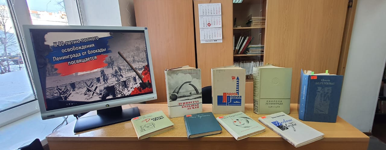 В целях сохранения исторической памяти о жертвах блокадного Ленинграда, к 80- летию полного освобождения города от немецко-фашистских захватчиков в библиотеке прошёл обзор книжной выставки «Говорит Ленинград". Студенты групп 9ТГ -11 и 9ТГ12 ознакомились с творчеством Ольги Берггольц - писателем, поэтом, журналистом, драматургом и музой осаждённого Ленинграда.