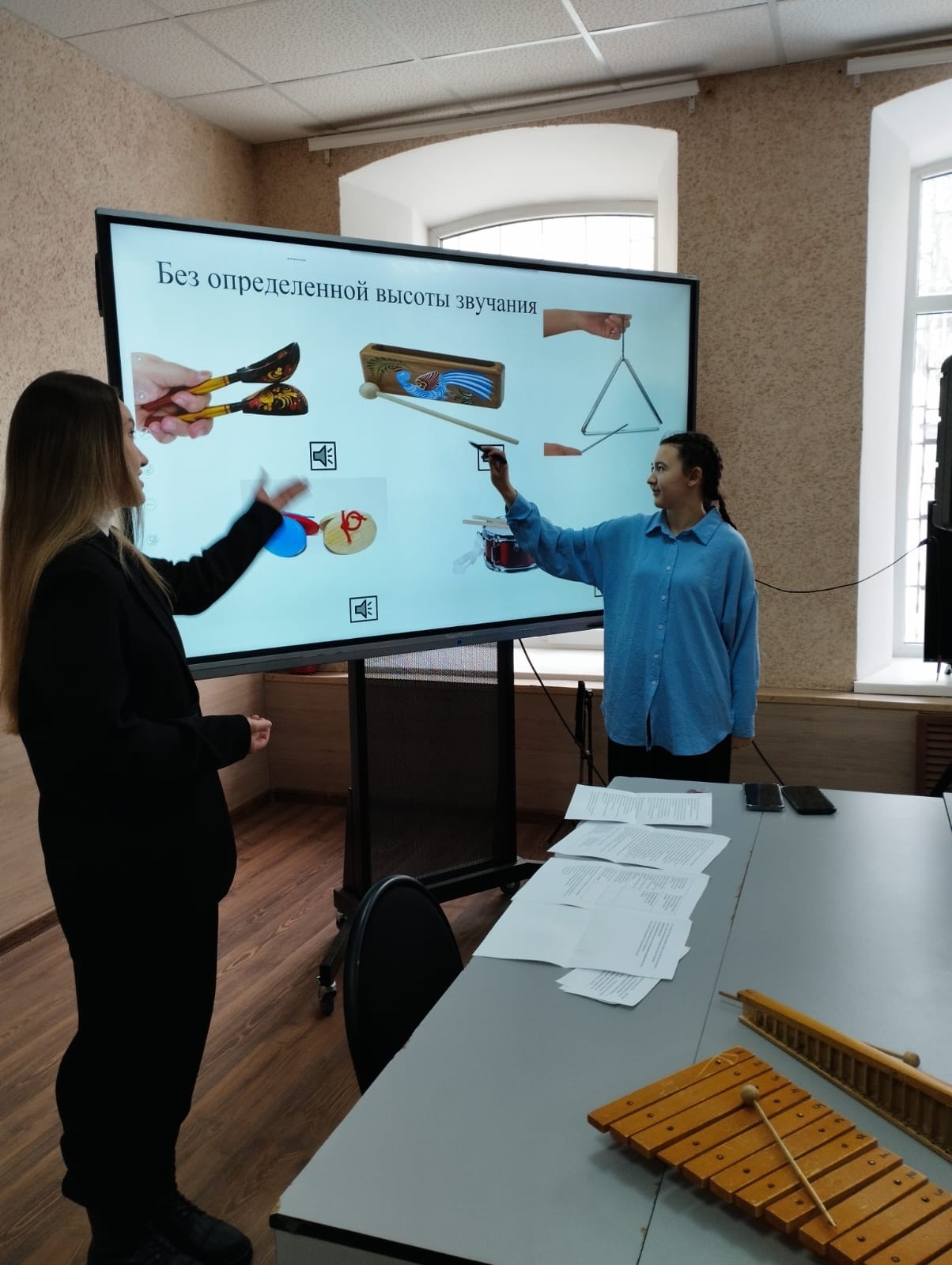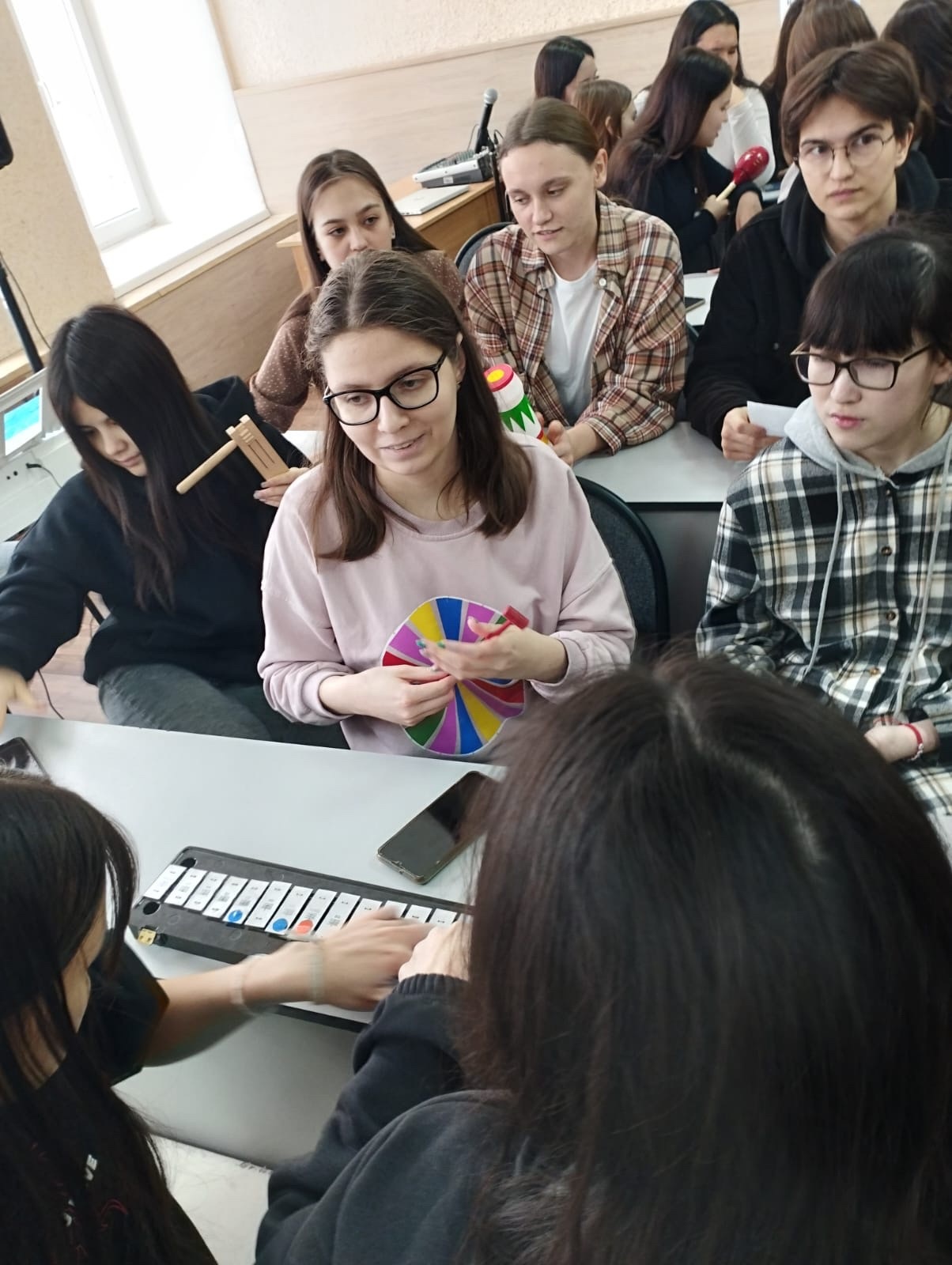 Студенты погрузились в мир музыки, закрепили свои знания о музыкальных инструментах, дополнив информацией о видах и свойствах звуков. Интерес поддерживался разнообразием предложенных игровых приемов.