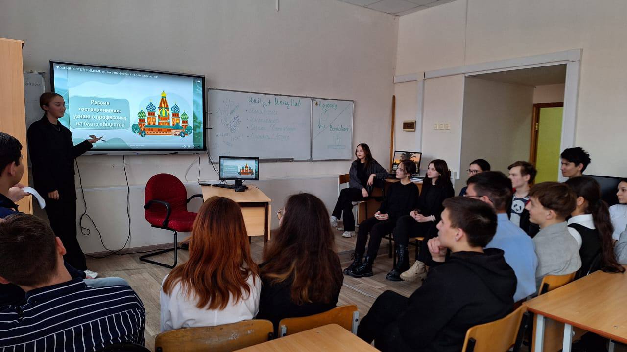 С 01.02 по 08.02.2024 г.в  колледже прошли кураторские часы " Россия гостеприимная: узнаю о профессиях на благо общества" по теме значимого направления образования " Россия - мои горизонты". На занятиях ребята узнали,