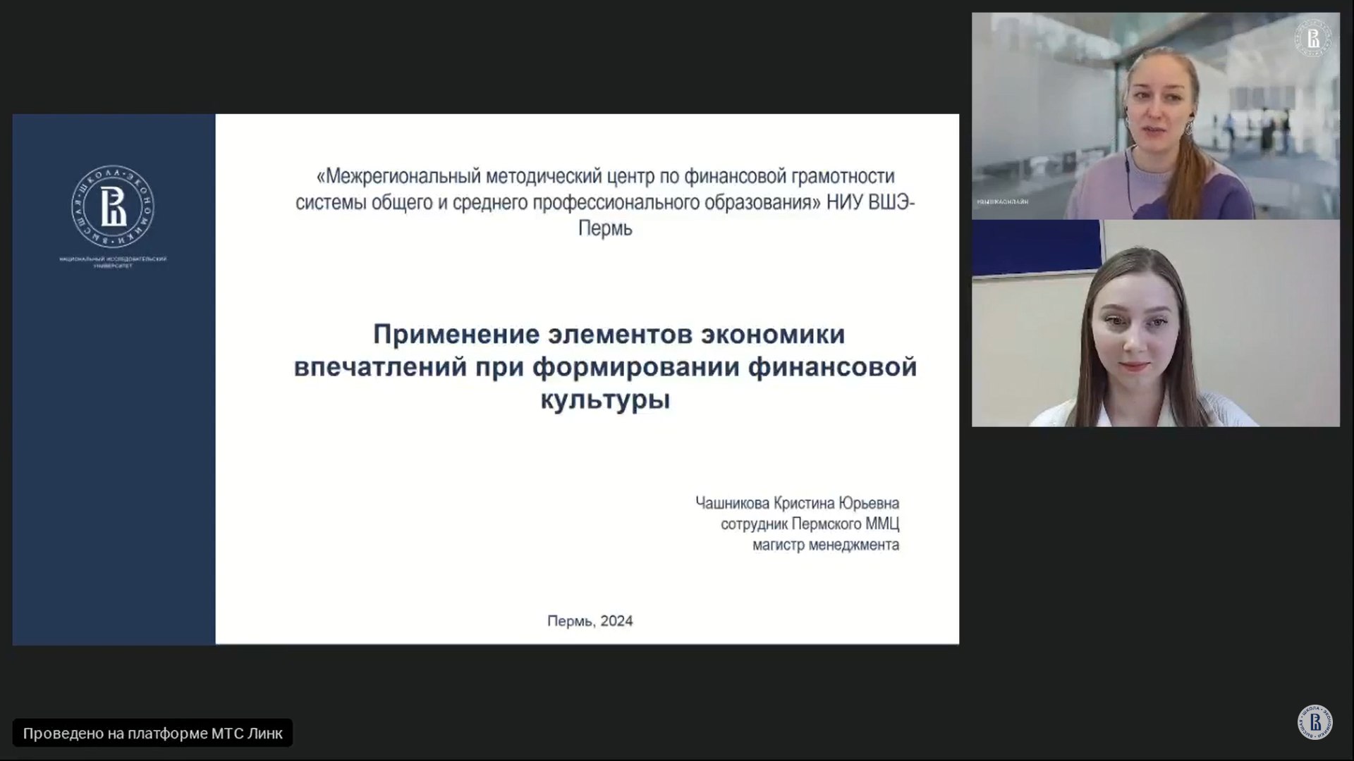 7 февраля 2024 г. преподаватель Колледжа БГПУ им.М.Акмуллы Зырянова Ольга Владимировна приняла участие в вебинаре "Применение элементов экономики впечатлений при формировании финансовой культуры", организованном Федеральном государственным автономным образовательным учреждением высшего образования "НАЦИОНАЛЬНЫЙ ИССЛЕДОВАТЕЛЬСКИЙ УНИВЕРСИТЕТ "ВЫСШАЯ ШКОЛА ЭКОНОМИКИ". На вебинаре рассмотрены аспекты экономики впечатлений, которые могут быть использованы при формировании финансовой культуры различных категорий учащихся, подходы к организации впечатлений в образовательной деятельности, а также примеры цифровых и интерактивных ресурсов, которые могут быть использованы в указанных целях.