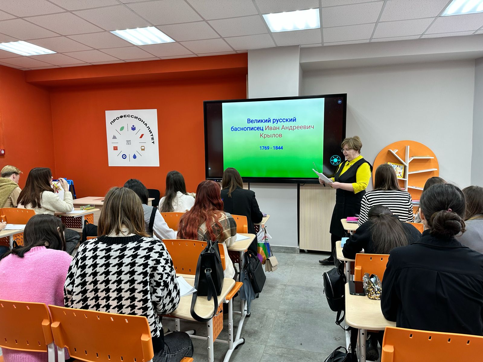 17 февраля в рамках декадника был проведен открытый урок, который осуществила преподаватель - Кирилова Светлана Юрьевна. Тема урока была посвящена великому русскому баснописцу И.А. Крылову.