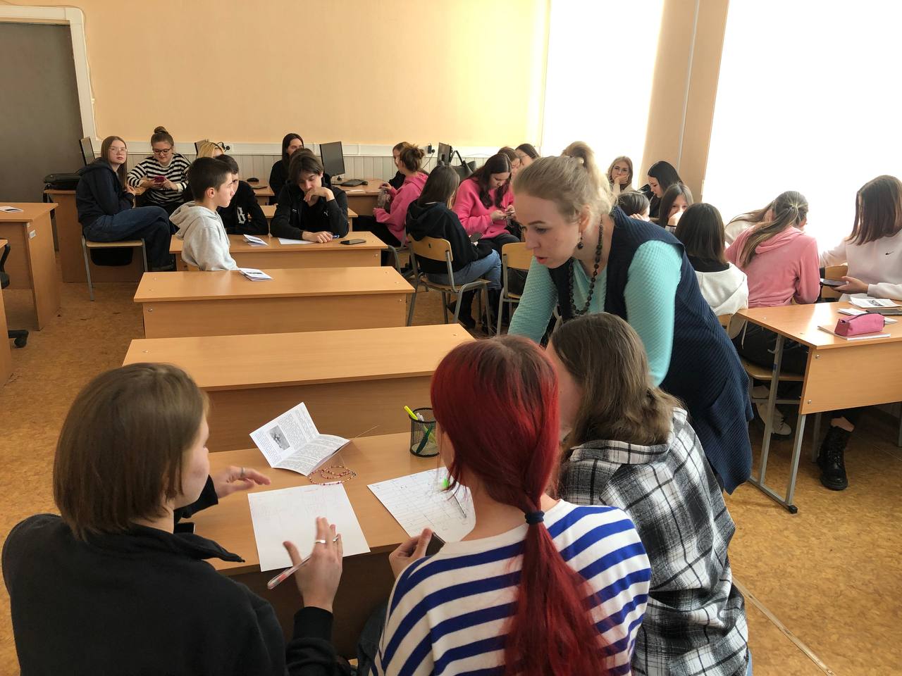 В рамках занятия студенты приняли участие в квиз-игре «А знаете ли вы женщин?». Игроки, разделившись на 4 команды, прошли три раунда, вспоминали историю праздника, известных женских героинь романов и исторических личностей.