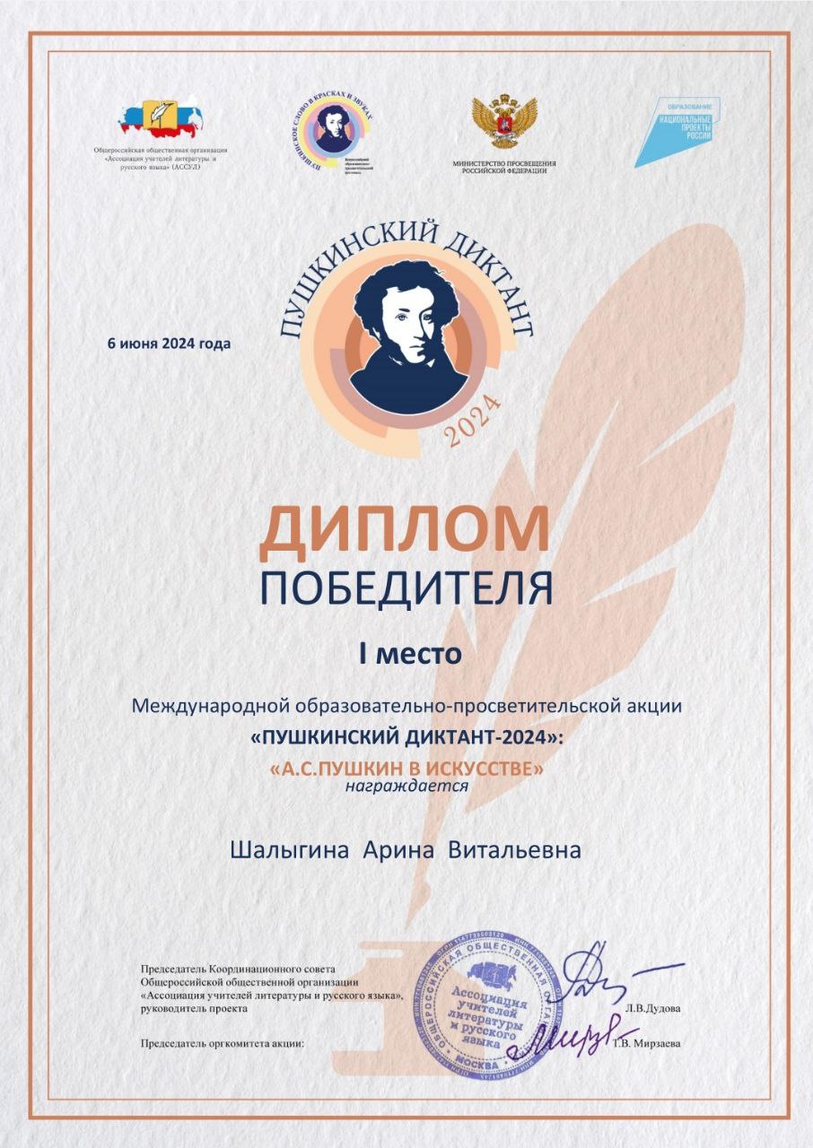 В июне 2024 года завершился V Международный конкурс видеороликов «Читаем А.С.Пушкина». Работы прислали из 80 регионов России. В этом году представители 17 стран читали произведения А.С. Пушкина: Азербайджан, Беларусь, Гана, Грузия, Испания, Италия, Казахстан, Конго, Кыргызстан, Ливан, Монголия, Приднестровская Молдавская Республика, Сербия, Сирия, Таджикистан, Турция, Узбекистан. Председателем жюри традиционно была Колесниченко Марина Дмитриевна – актриса и председатель ПТК «Товарищество артистов МХАТ".  В юбилейный год А.С. Пушкина оценивал работы Петр Викторович Гилев – художественный руководитель и режиссер «Товарищества артистов МХАТ". На конкурс в 2024 году было отправлено  1986  работ. Студентка  1 курса специальности «Туризм и гостеприимство» Колледжа БГПУ им. М.Акмуллы Юлмухаметова Гульназира (руководитель Гафарова Л.В.) исполнила стихотворение А.С.Пушкина на русском и башкирском языках, за что была удостоена Диплома лауреата III степени.