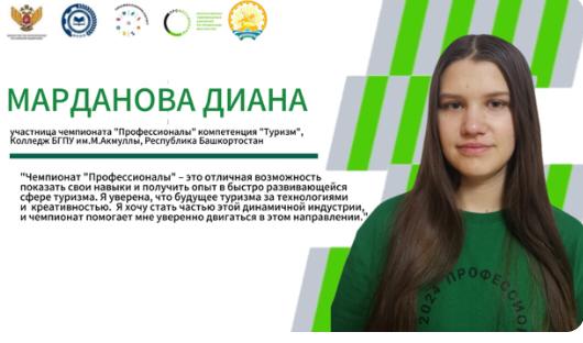 В Финале от Республики Башкортостан приняла участие студентка колледжа БГПУ им. М. Акмуллы Марданова Диана, эксперт Кильмухаметова Гульназ Фанилевна. В подготовке участвовала команда - Коваленко Ксения Валерьевна, Серова Оксана Васильевна, Ахметгалеева Динара! Спасибо ВСЕМ за плодотворную работу и возможность участвовать в индивидуальном выступлении Диане (правила участия в Финале поменялись)! В чемпионате принимали участие 14 регионов России и 1 международный участник.