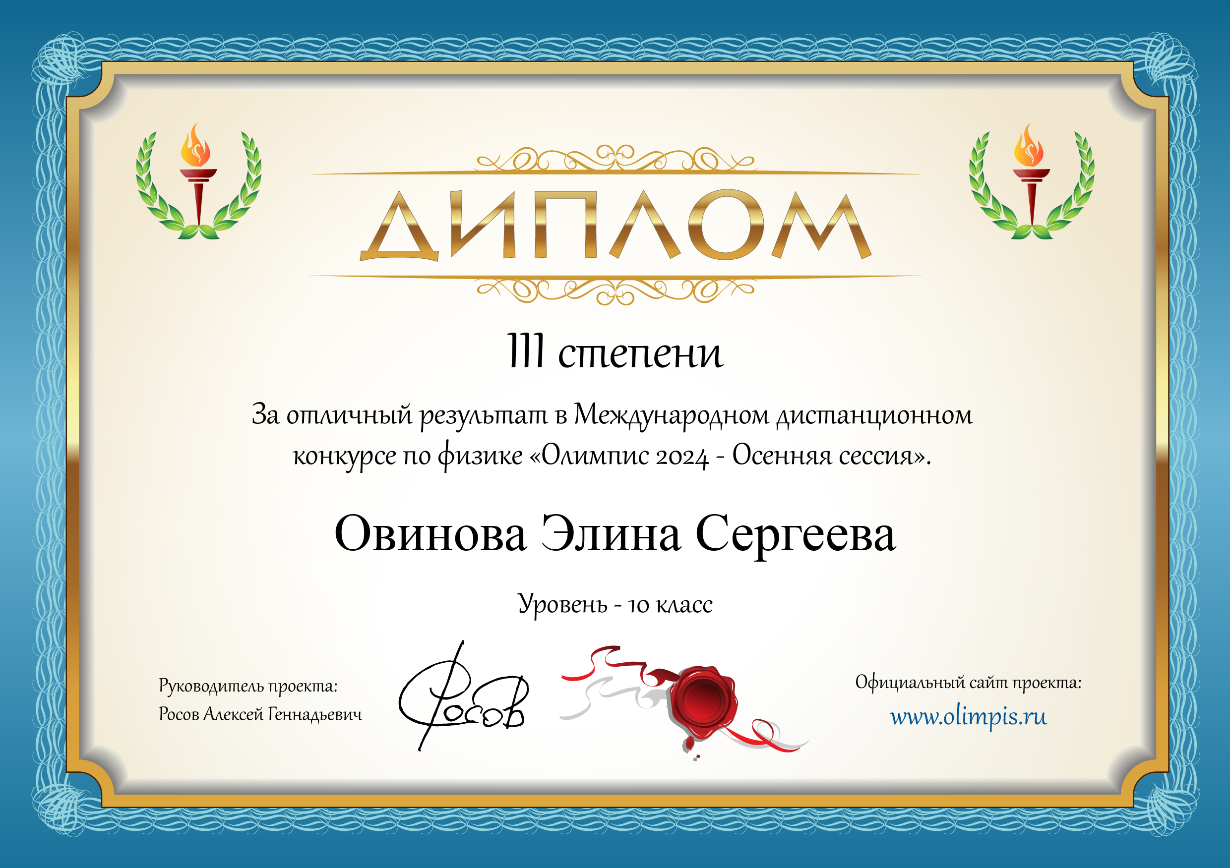 4. Дипломом III степени (уровень 10 класса) награждена: Осмачко Варвара Владимировна