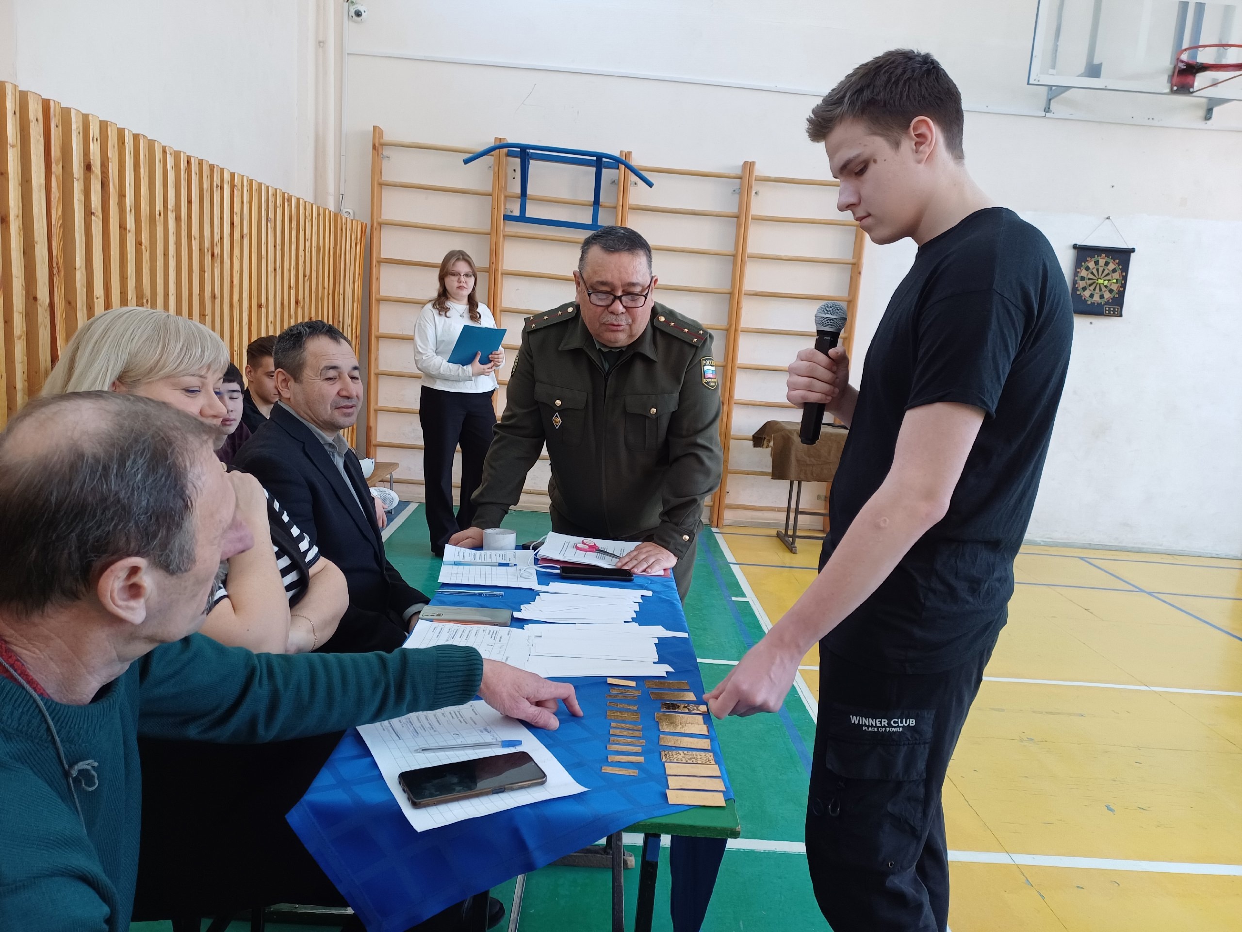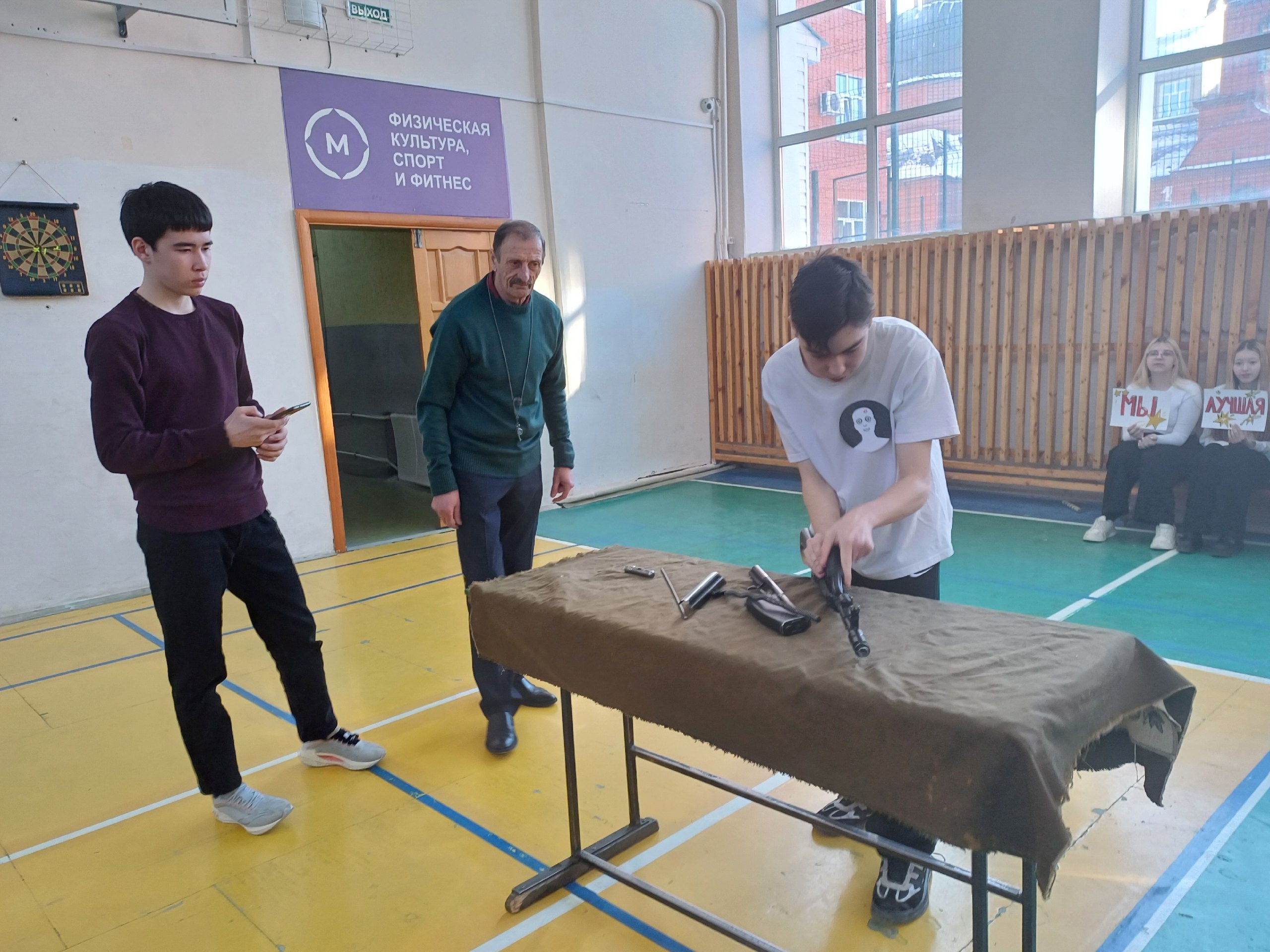 Ребята соревнуются в состязаниях на сборку-разборку оружия, знания военных званий и многих других!