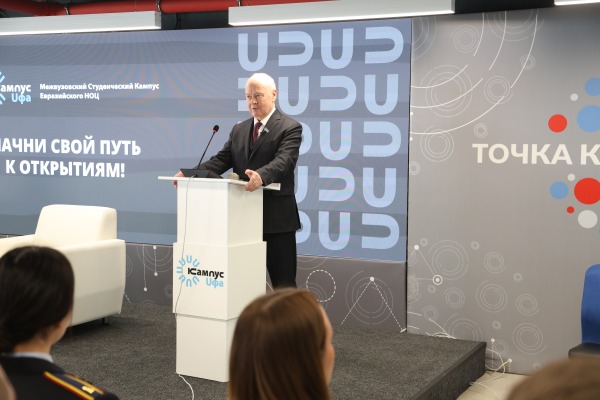 На территории Межвузовского студенческого кампуса Евразийского НОЦ студенты колледжа встретились с Председателем Государственного Собрания – Курултая Республики Башкортостан Константином Толкачевым