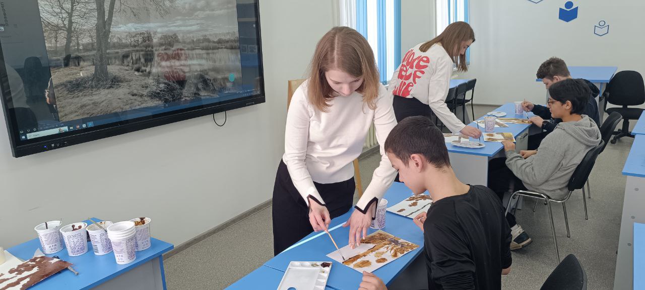 В рамках Профессионального навигатора в Центре педагогических компетенций студенты 4 курса с преподавателем Козловой Галиной Владимировной специальности Изобразительное искусство и черчение провели мастер-класс «Кофейная монополия» для учащихся 8-х классов Школы №100 им.А.А. Абдуллина.
