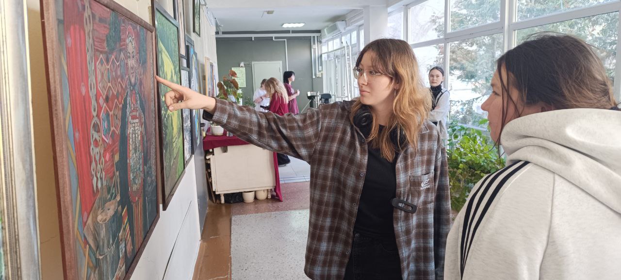 В преддверии XIV Межрегиональной олимпиады по изобразительному, декоративно-прикладному искусству и музыке «В мире красок и мелодий» в Арт кластере открылась выставка художественных работ студентов специальности Изобразительное искусство и черчение, посвященную Году поддержки участников специальной военной операции и членов их семей. В экспозиции представлены дипломные работы 2023-2024 учебного года, курсовые и учебные работы.