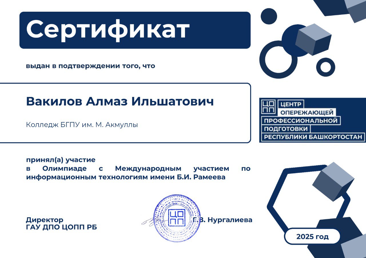 • Вакилов Алмаз (группа 9ИСИП-22П-23(27))