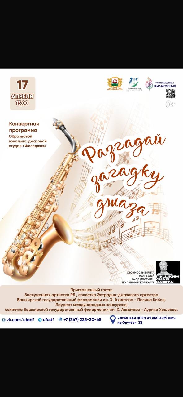 17 апреля студенты группы 9МО-21П-23(27) вместе с преподавателями А.А. Юферовой и Н.Г. Ямалетдиновой посетили яркий концерт образцовой вокально-джазовой студии «Филджаз» в Башкирской государственной филармонии им. Х. Ахметова. Студия «Филджаз», возглавляемая выпускницей специальности 53.02.01 «Музыкальное образование», представила захватывающую программу, а гостями вечера стали Лауреат международных конкурсов Аурика Уршеева и Заслуженная артистка РБ Полина Кобец (тоже выпускница нашей специальности!).