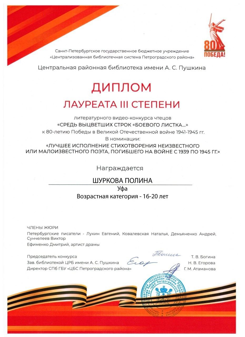 В Центральной районной библиотеке им. А.С. Пушкина завершился открытый литературный видеоконкурс "Средь выцветших строк «Боевого листка»", посвященный 80-летию Победы. Этот значимый проект, посвященный памяти поэтов-фронтовиков, был предложен нашим давним партнером – литературным проектом "Именинный пирог".