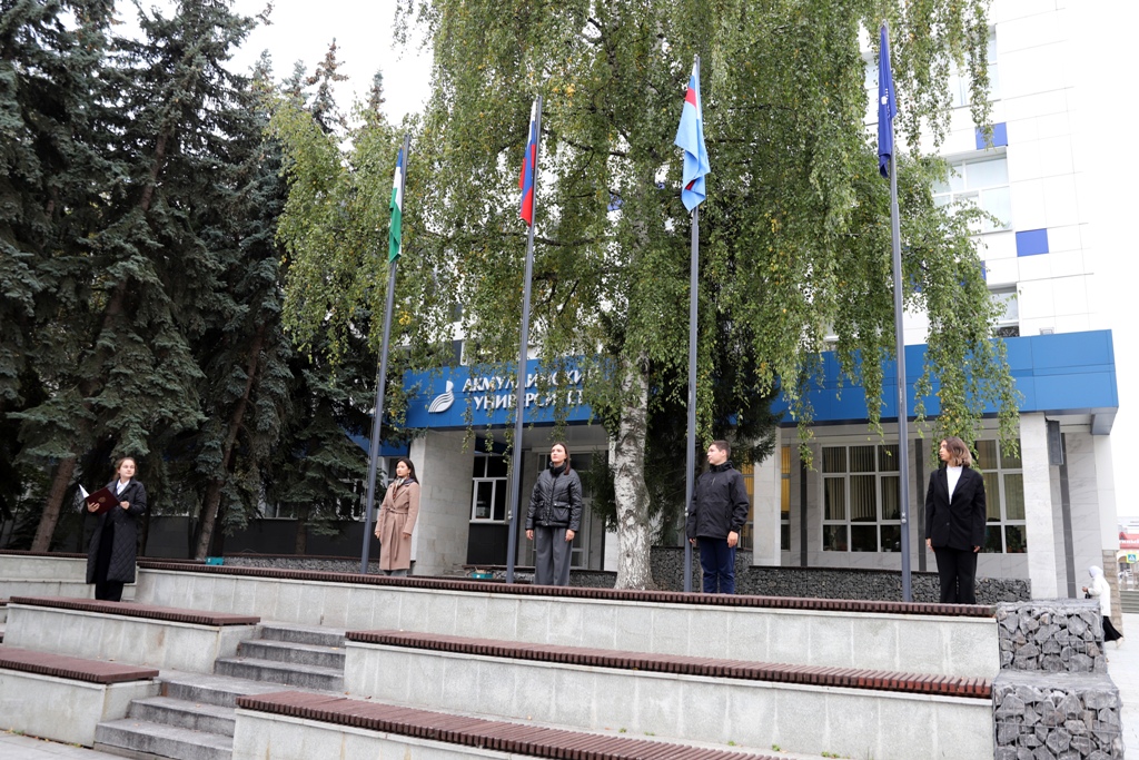 15 сентября в Башкирском государственном педагогическом университете им. М. Акмуллы состоялась традиционная еженедельная церемония поднятия государственных флагов Российской Федерации, Республики Башкортостан, флагов Министерства просвещения Российской Федерации и Акмуллинского университета. Участие в ней приняли студенты и преподаватели  колледжа БГПУ им. М. Акмуллы.