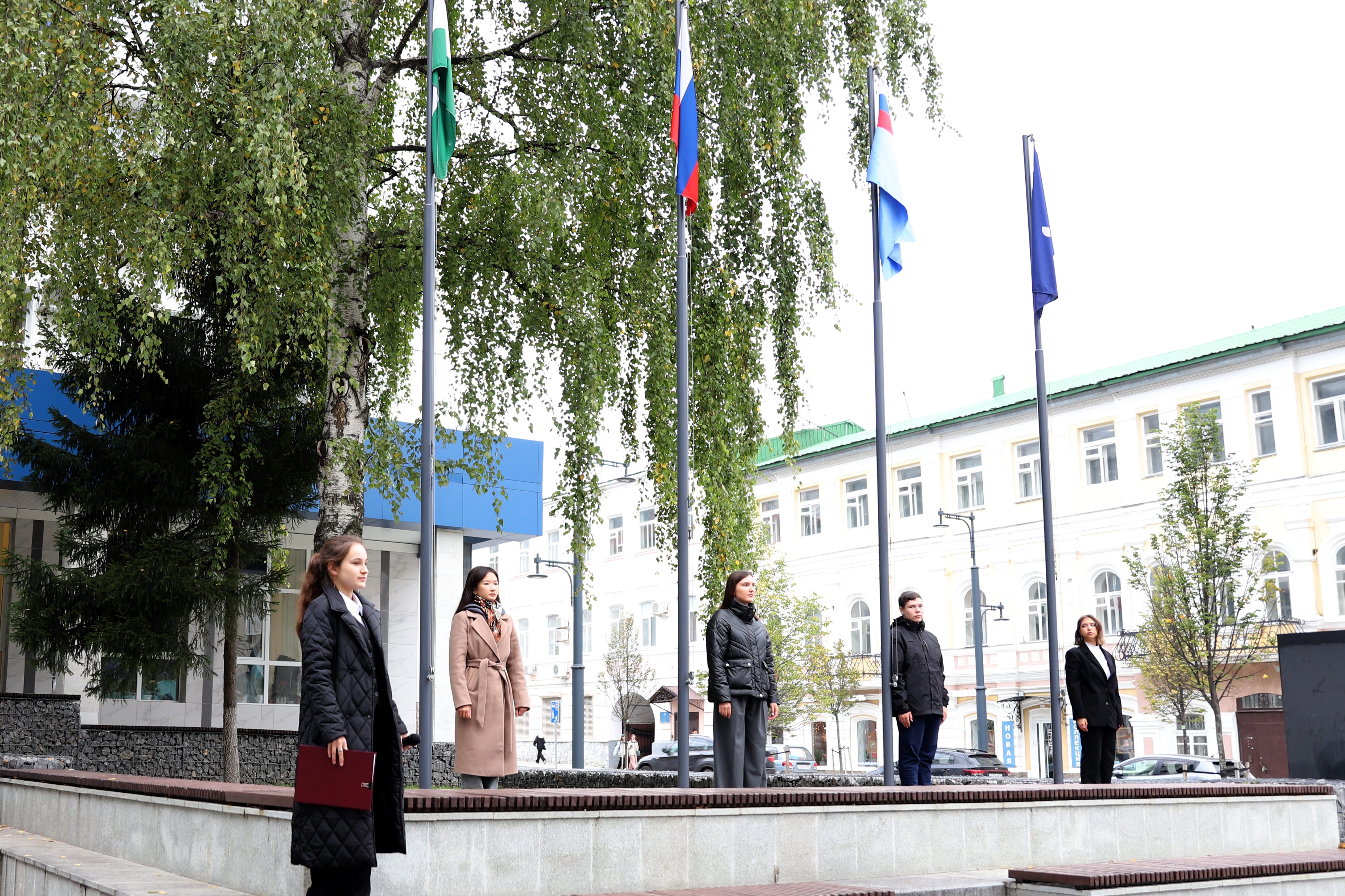 Почетное право поднять флаги на площади перед вузом получили студенты Акмуллинского колледжа, имеющие особые достижения в учебе, общественной, культурной и научной деятельности: