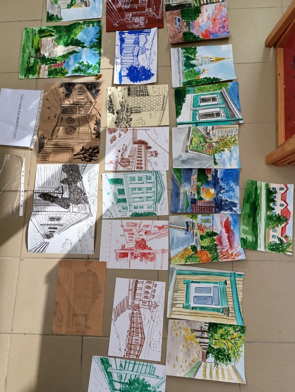 Этот творческий процесс позволил создать графические зарисовки, наброски, этюды городских мотивов старой Уфы, новостроек, парков, скверов с натуры. Погода порадовала солнечными днями и у студентов третьего курса получились замечательные работы.
