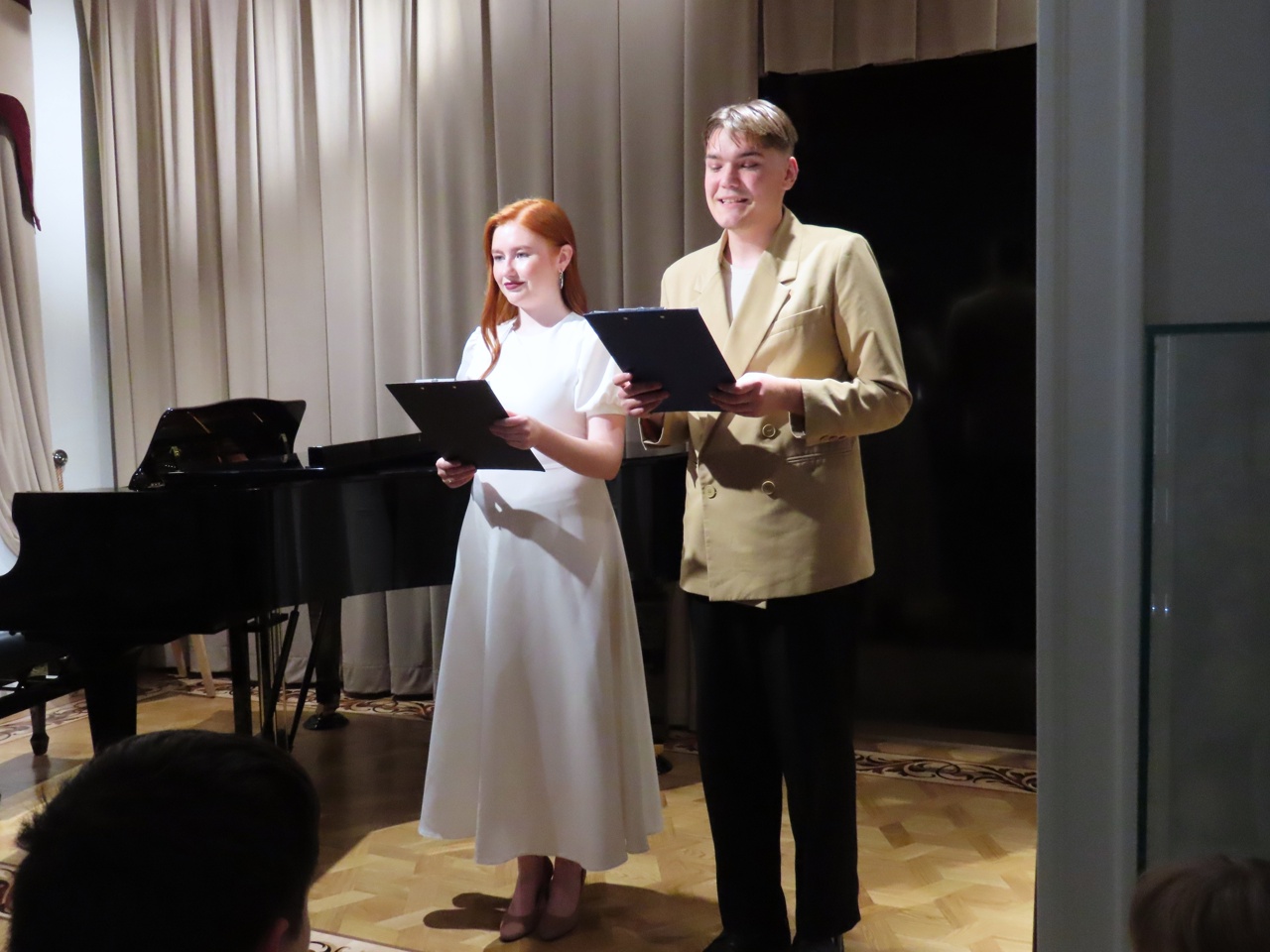 Замечательные ведущие – Байрашева Таня и Арефьев Денис – изящно представляли исполнителей, сопровождая каждый выход увлекательными рассказами о композиторах и их бессмертных произведениях.