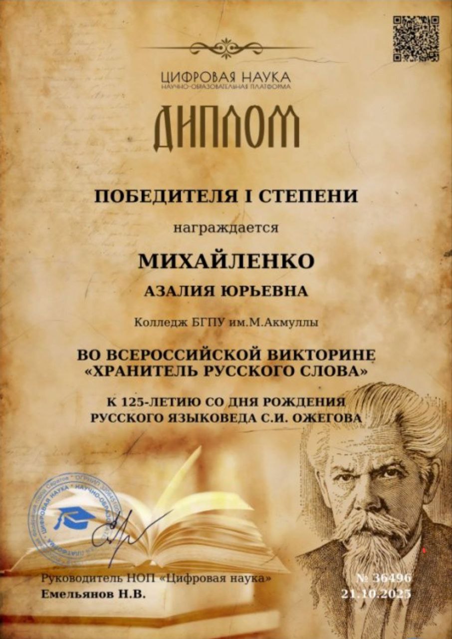 #АкмуллинскийКолледж #РусскийЯзык #Ожегов125 #ХранительРусскогоСлова #ВсероссийскаяВикторина #ЦифроваяНаука #Студенты #Преподаватели #Библиотековедение #НачальныеКлассы #Лингвистика #РусскаяСловесность #Победа #ГордостьКолледжа #Уфа