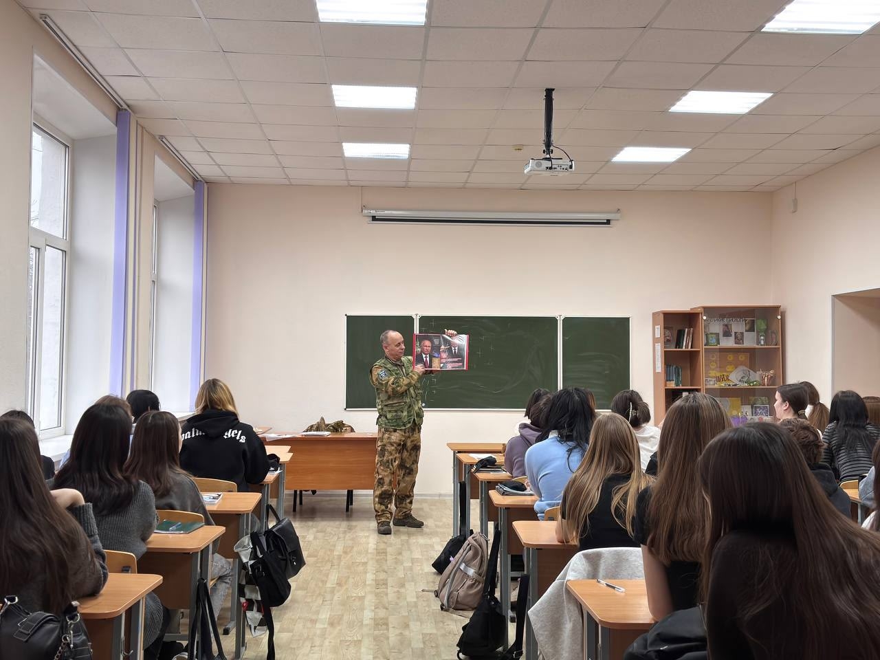 Сегодня в наших стенах состоялось событие, которое оставило глубокий след в сердцах каждого присутствующего – Урок мужества, который провел участник специальной военной операции, наш земляк Даутов Рафаэль.