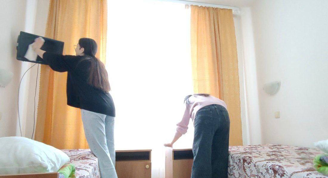 Студенты в этом году благодаря проекту Российских студенческих отрядов «Труд крут» осваивают профессию Горничной 2 го разряда.
