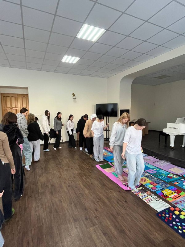 Студенты групп 9ДО-21П-24(28) и 9ДО-22П-24(28) представили свои авторские проекты — самодельные ортопедические ковры, предназначенные для бодрящей гимнастики после сна в детском саду.