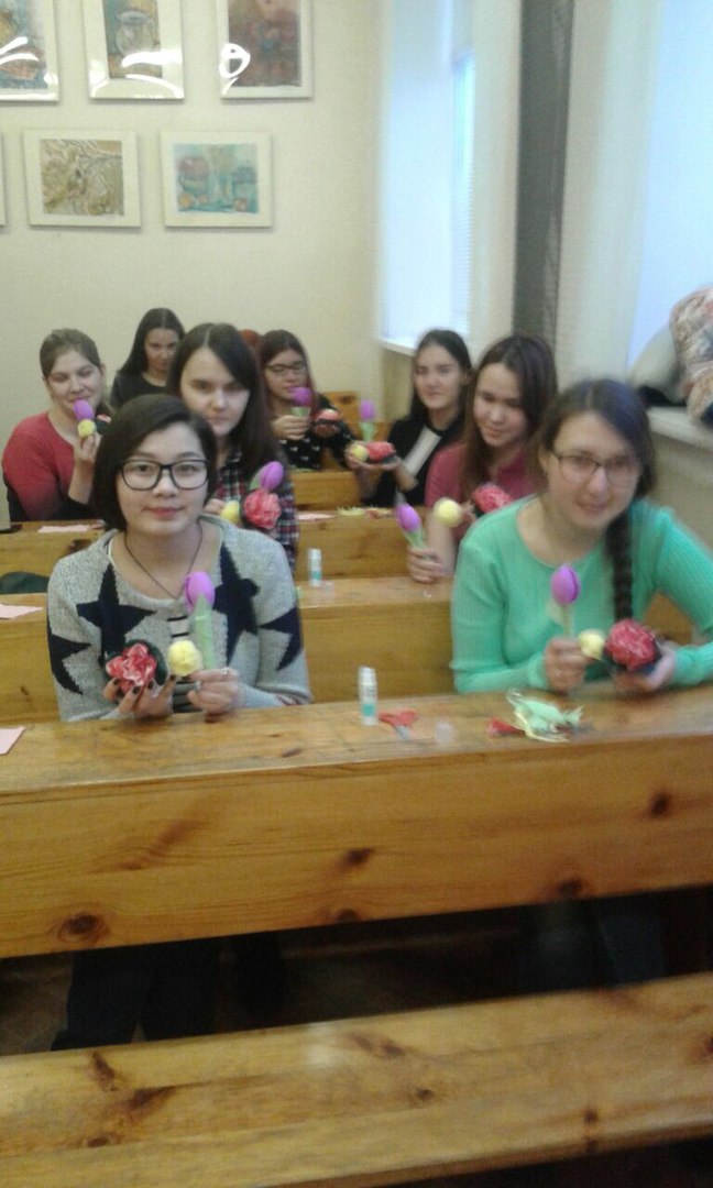 Студенты Колледжа БГПУ им.М.Акмуллы, специальности "Дошкольное образование" активно посещают курсы "Технологии декоративно-прикладного искусства в дошкольных образовательных организациях". Ребята с интересом выполняют все задания.  Своими впечатлениями поделилась студентка Алехина Татьяна: "Эти курсы нам всем очень нравятся. Знания, полученные на этих занятиях, нам пригодятся в нашей будущей профессии. Ведь использование различных видов искусства в развитии ребенка дает возможность для личностного развития, активизирует творческий процесс, углубляет эмоции, развивает чувства, интеллект. "
