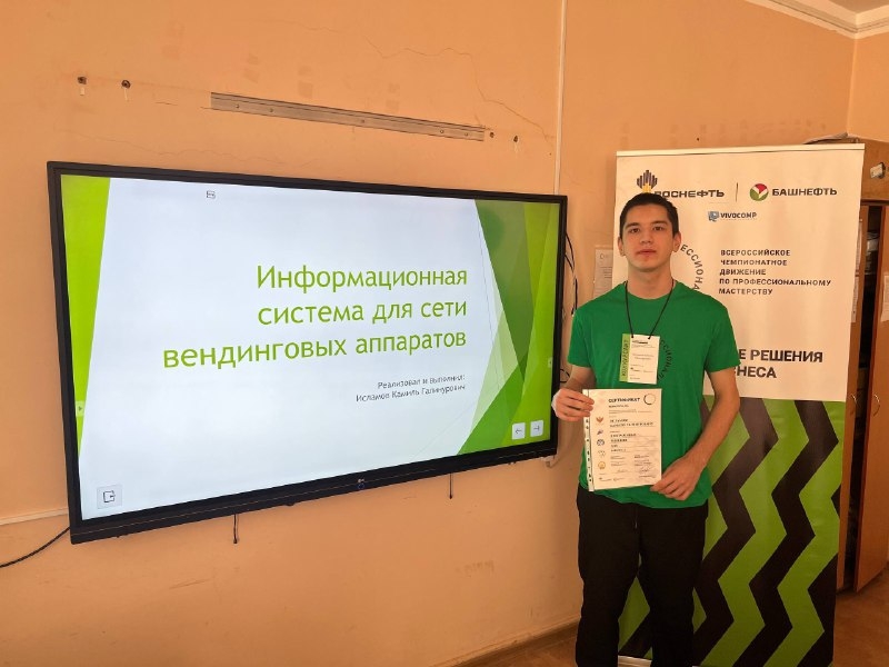 Наш колледж в данной компетенции представлял Исламов Камиль - студент второго курса направления «Информационные системы и программирование» под руководством эксперта-наставника Курбангалеевой Карины Расимовны.