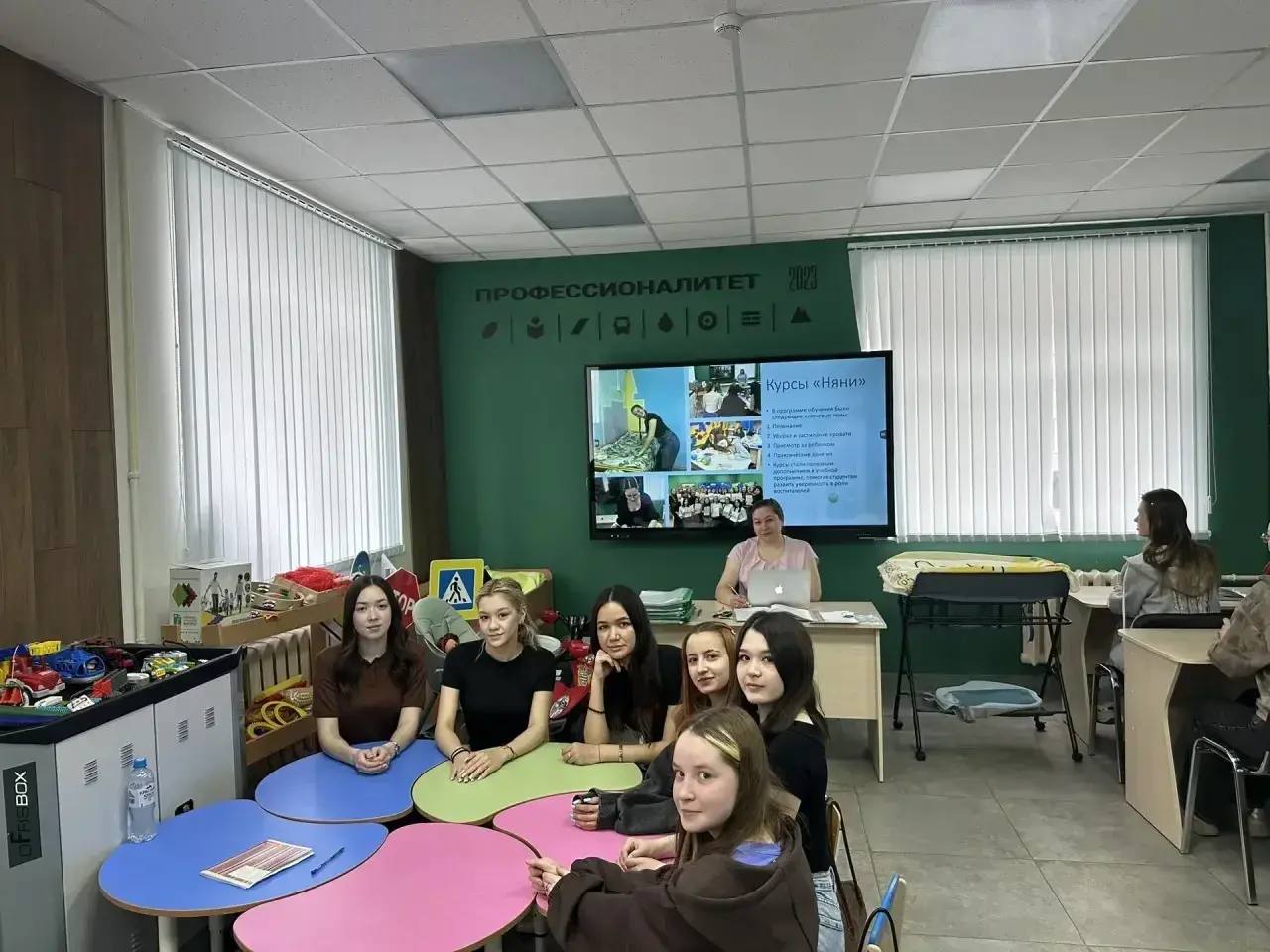 20 студентов колледжа осваивают профессию Няня, став членами студенческих отрядов. У них уже начались первые занятия, а впереди ждет практика. По окончанию обучения студенты получат свидетельство  и смогут трудоустроиться по профессии.