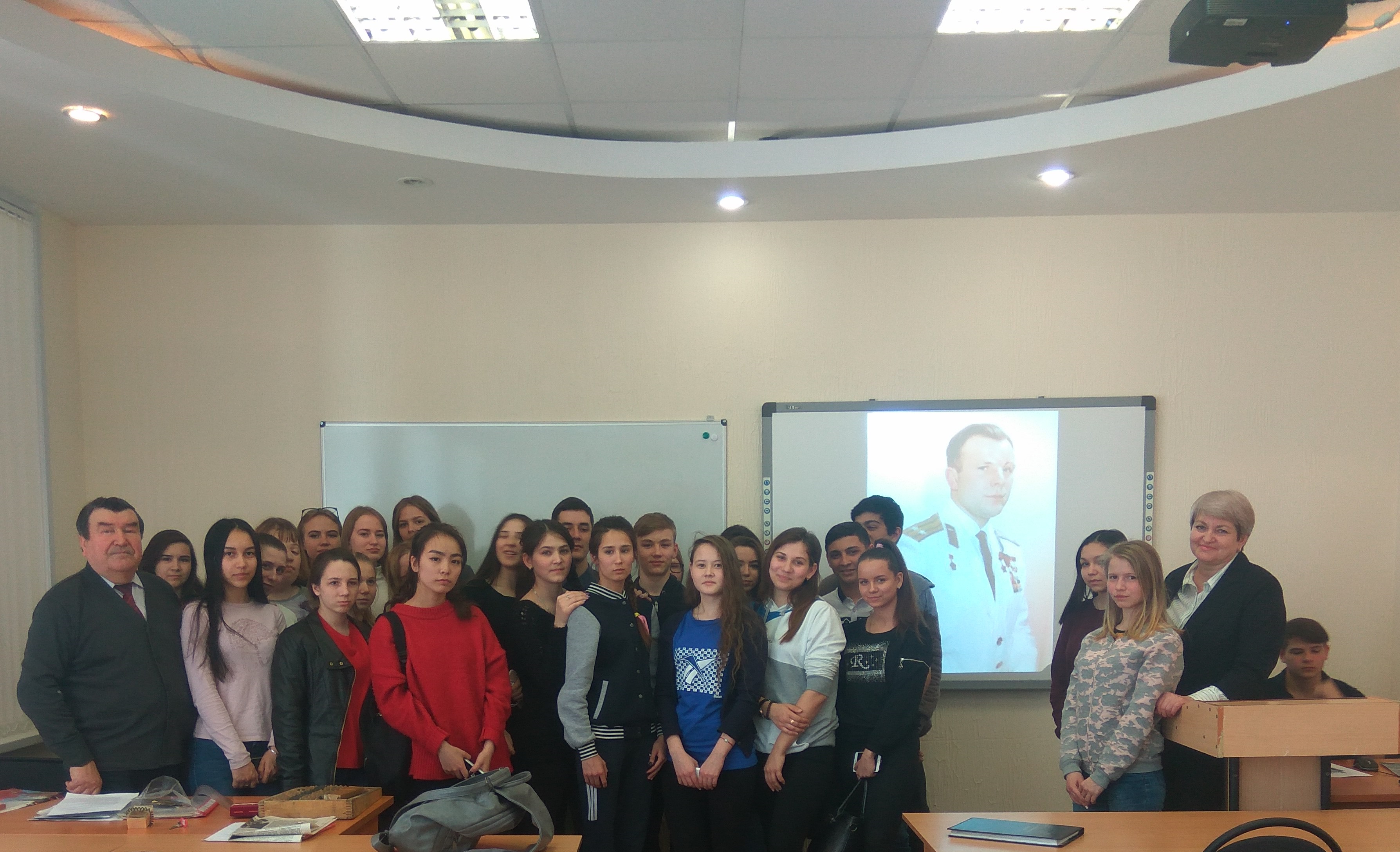 На классном часе прозвучали доклады студентов: «Биография Ю. А. Гагарина», «Осень 1954 года…», «Из воспоминаний учителя физики», «Встреча со временем», стих Е. Долматовского «Взлет в века» и др. Был продемонстрирован видео-материал о Ю. А. Гагарине. Интерес вызвали предметы-ровесники 1961 года и печатные материалы.