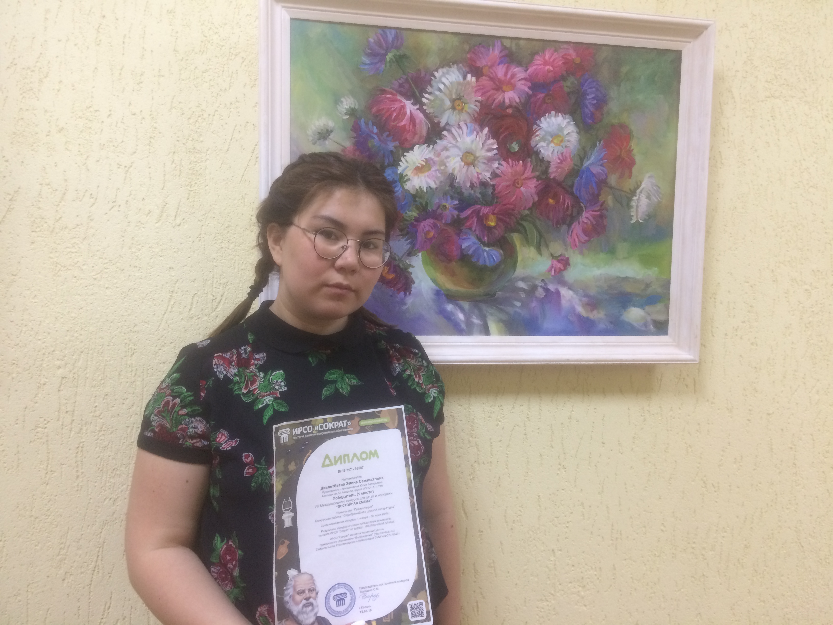12 марта в 8 Международном конкурсе для детей и молодежи «Достойная смена»  заняла 1 место в номинации «Презентация» с конкурсной работой «Серебряный век русской литературы». г.Казань