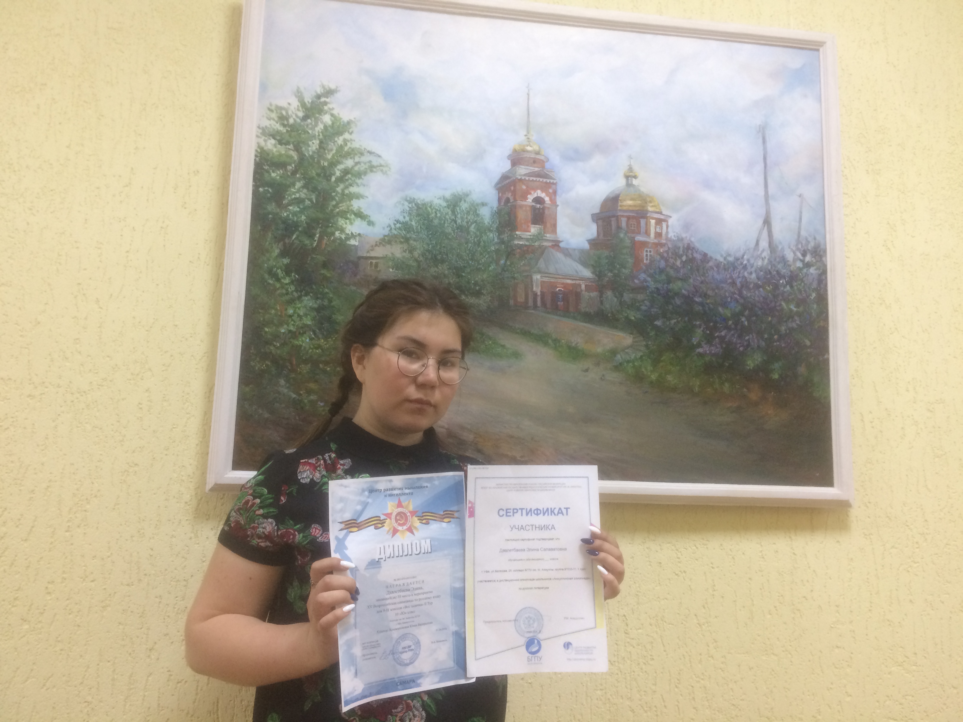 1 апреля прошло награждение 15 Всероссийской олимпиады по русскому языку для 9-11 классов «Вот задачка» 2 Тур, в котором студентка колледжа БГПУ им.М.Акмуллы Давлетбаева Элина (гр. 9ПСО-11) заняла 3 место. Так же, она участвовала в дистанционной олимпиаде школьников «Акмуллинская олимпиада» по русской литературе и получила сертификат. г.Самара