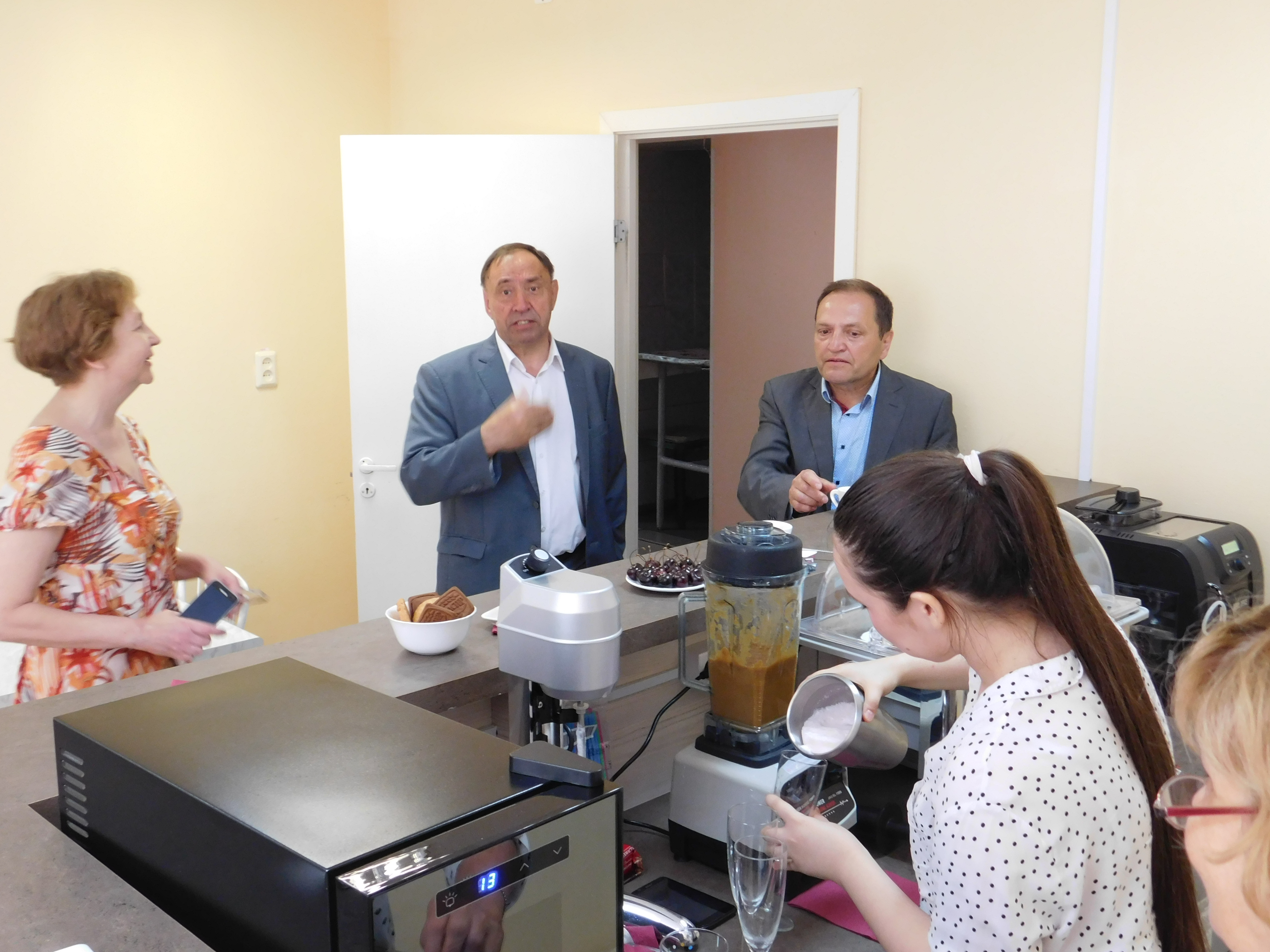 Почетным гостем на педагогическом совете стал ректор университета Раиль Мирваевич Асадуллин. Перед мероприятием, директор колледжа, М.А.Курунов представил ректору новые кабинеты и лаборатории. В зале 3D Раиль Мирваевич познакомился в мультимедийным 3D комплексом «Эврика», который используется преподавателями естественнонаучных дисциплин. В Лаборатории виртуального проектирования высокому гостю были показаны модели, выполненные в технологии дополненной реальности: объекты культурно-исторического наследия, обучающие и рекламные материалы. Большой интерес у Раиля Мирваевича вызвала геодезическая лаборатория, которую представили руководитель образовательной программы А.Р.Бикмаева и выпускник 2018 года Денис Фахреев. Высокую оценку получили модельные рабочие места различных служб гостиниц, которые предназначены для отработки профессиональных навыков студентов специальности «Гостиничный сервис».